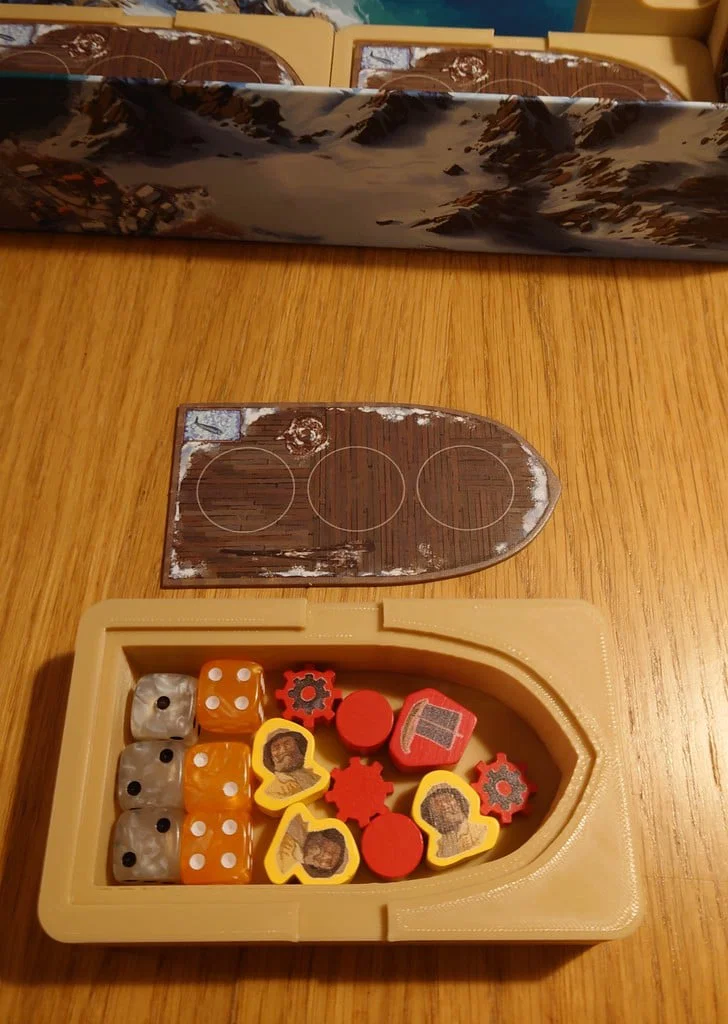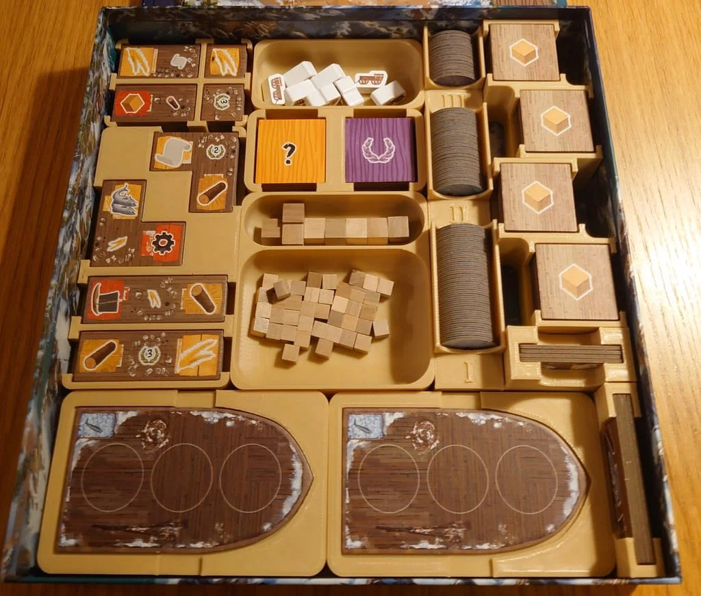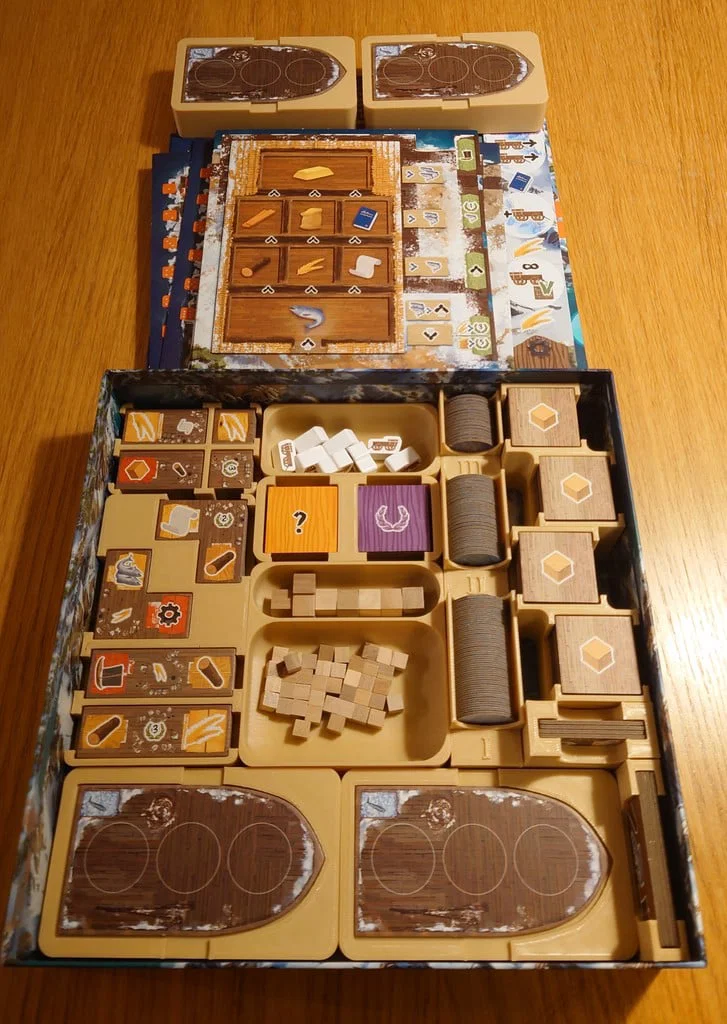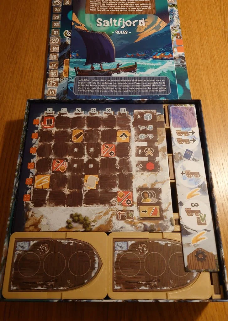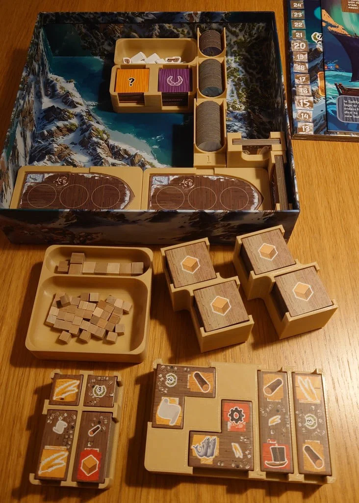 Bộ insert thiết kế tối ưu cho Saltfjord, giúp lấp đầy toàn bộ hộp game để lưu trữ gọn gàng hơn. Thiết kế tiện lợi cho việc setup nhanh chóng, bao gồm các hộp đựng tài nguyên và vật dụng cá nhân riêng biệt cho từng người chơi.
