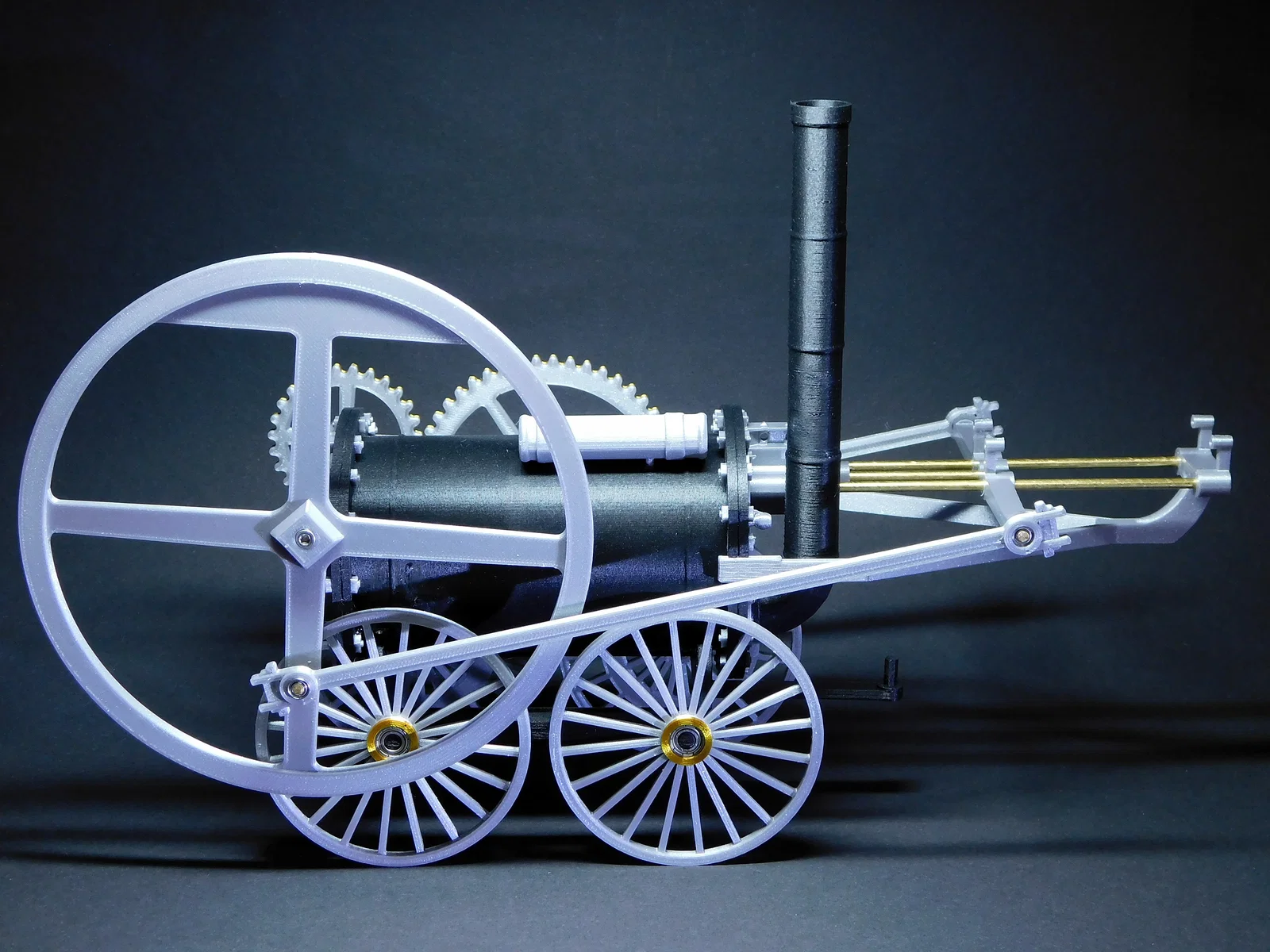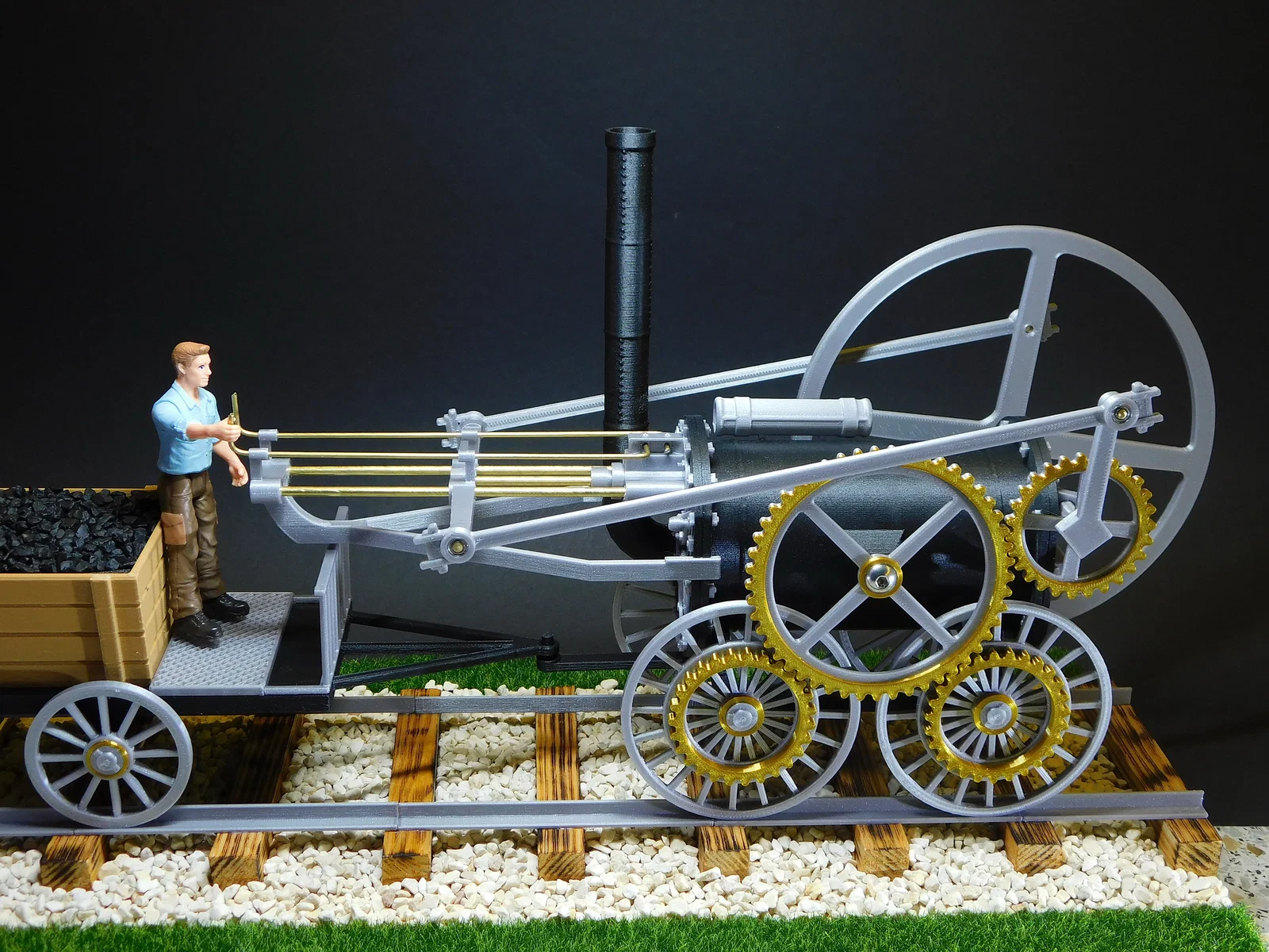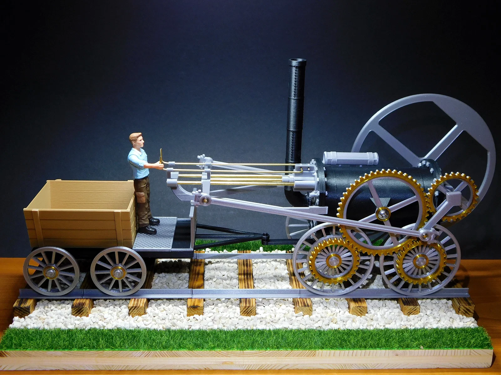 Mô hình đầu máy hơi nước đầu tiên của Richard Trevithick, một nhà phát minh người Anh từ năm 1804. Trong lúc tìm kiếm các mô hình cơ khí, mình đã thấy chiếc đầu máy này và rất ấn tượng, nên mình quyết định tạo ra một mô hình in 3D cho những ai yêu thích lịch sử và tàu hỏa. Các chi tiết không cần dùng support, một số bộ phận gồm hai phần và cần dán lại với nhau.
