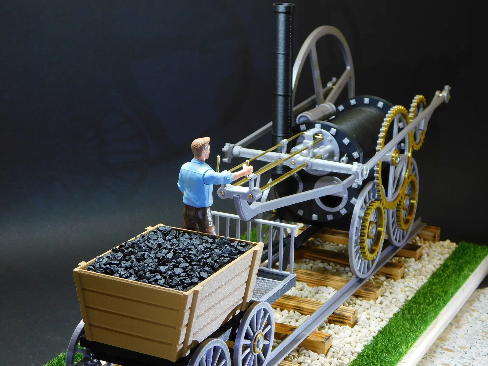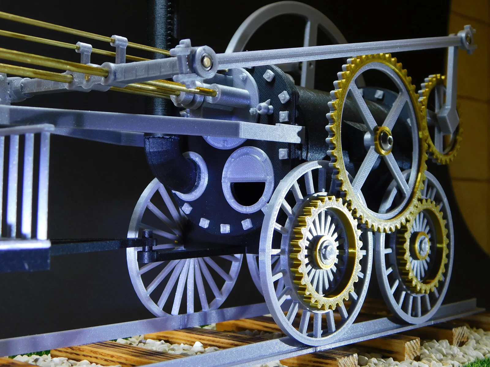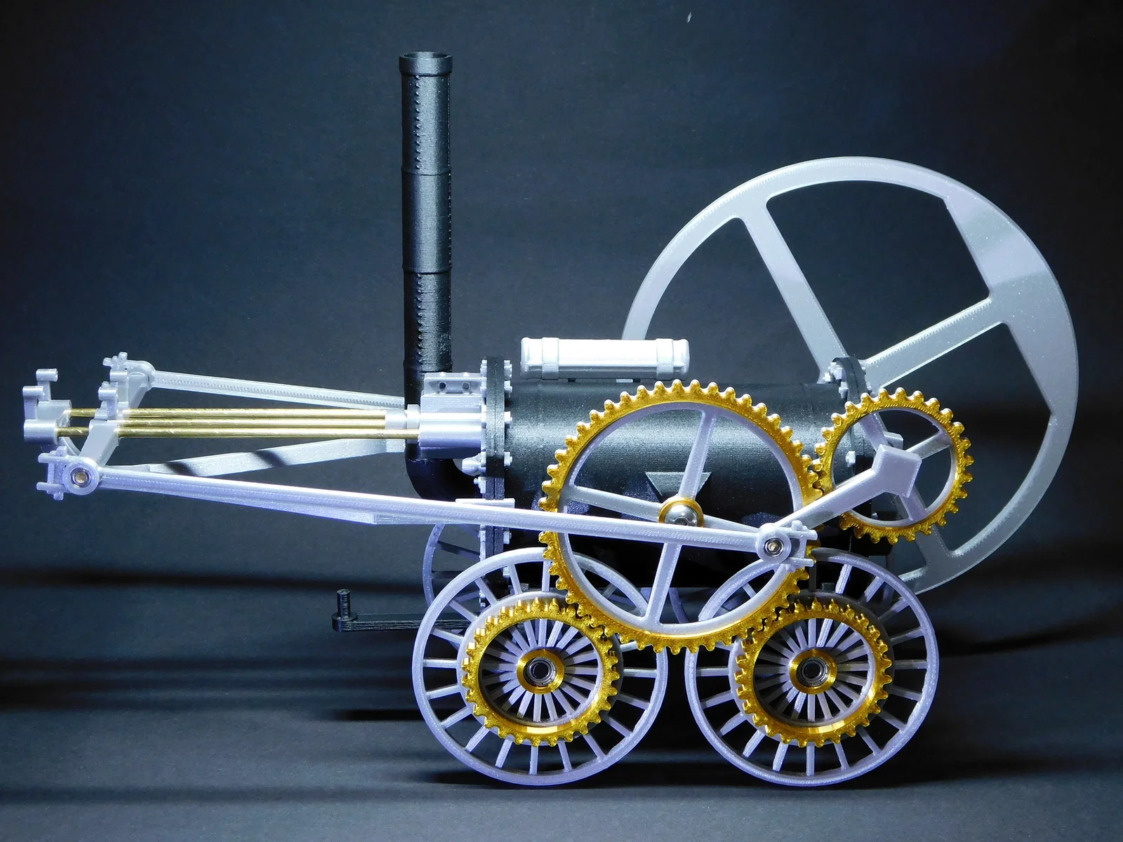 Mô hình đầu máy hơi nước đầu tiên của Richard Trevithick, một nhà phát minh người Anh từ năm 1804. Trong lúc tìm kiếm các mô hình cơ khí, mình đã thấy chiếc đầu máy này và rất ấn tượng, nên mình quyết định tạo ra một mô hình in 3D cho những ai yêu thích lịch sử và tàu hỏa. Các chi tiết không cần dùng support, một số bộ phận gồm hai phần và cần dán lại với nhau.