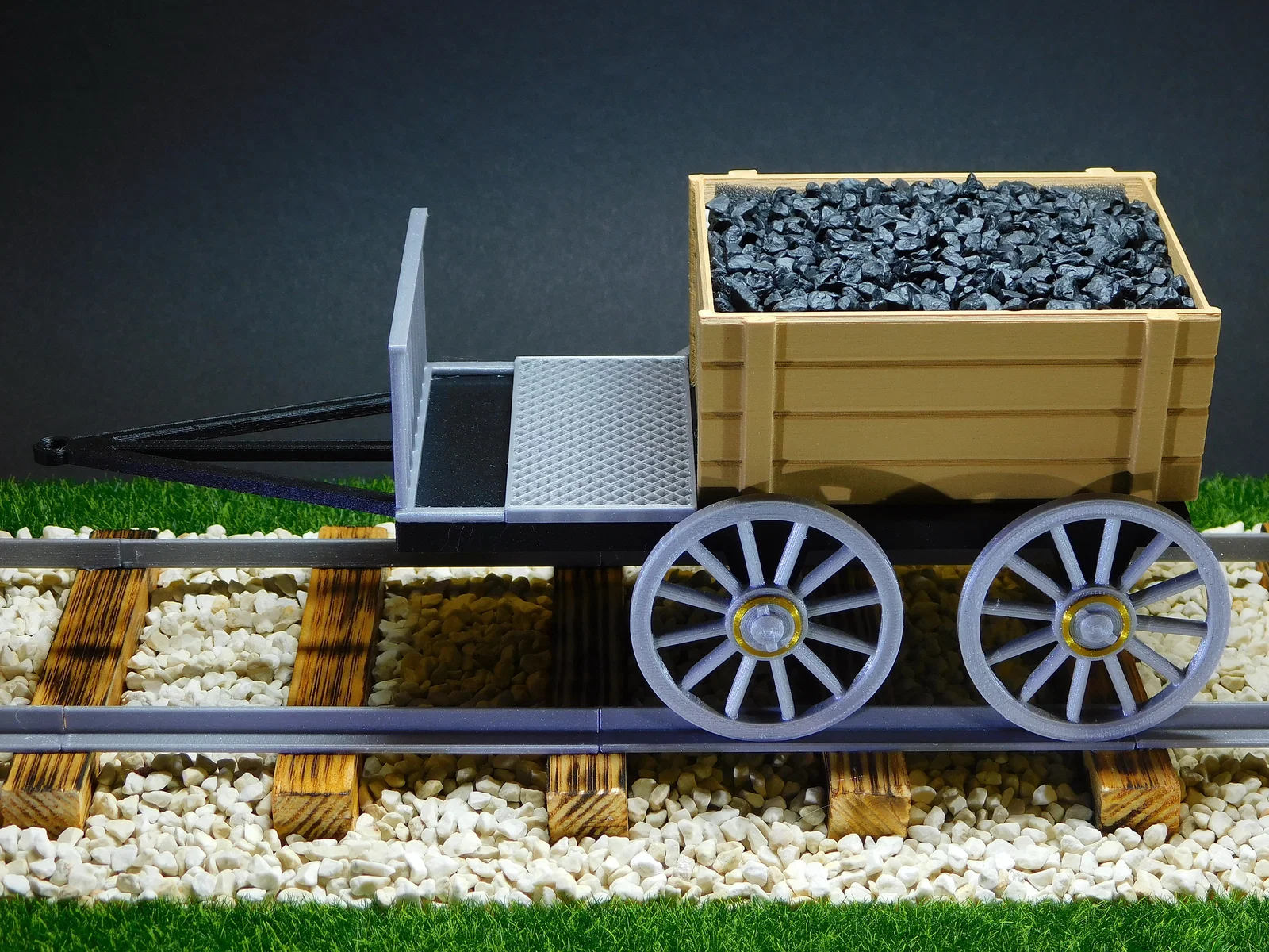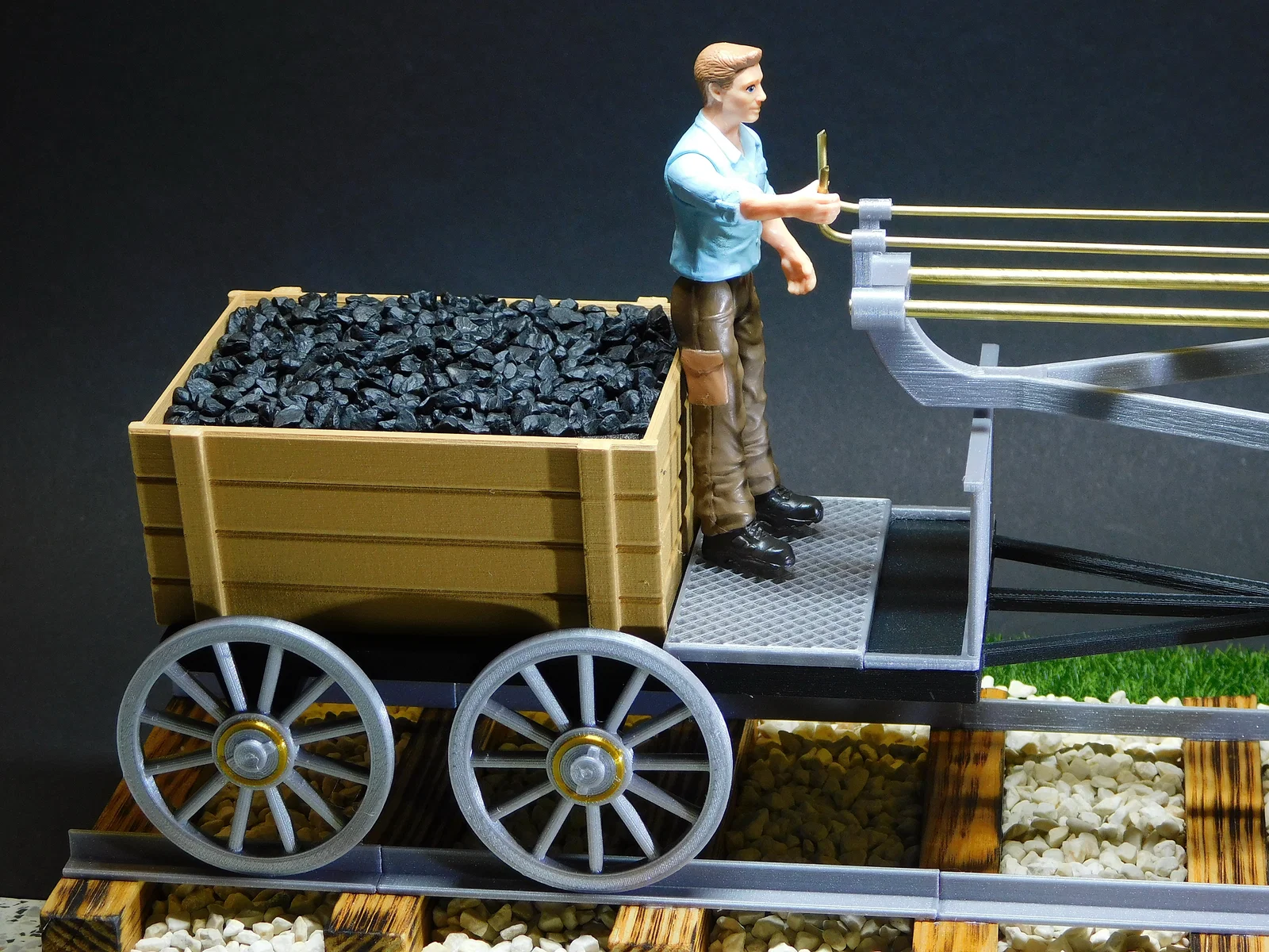 Mình cũng đã làm một đoạn đường ray giả để mô hình trông thực tế hơn. Chiếc xe goòng là món quà tặng kèm cho mô hình này.