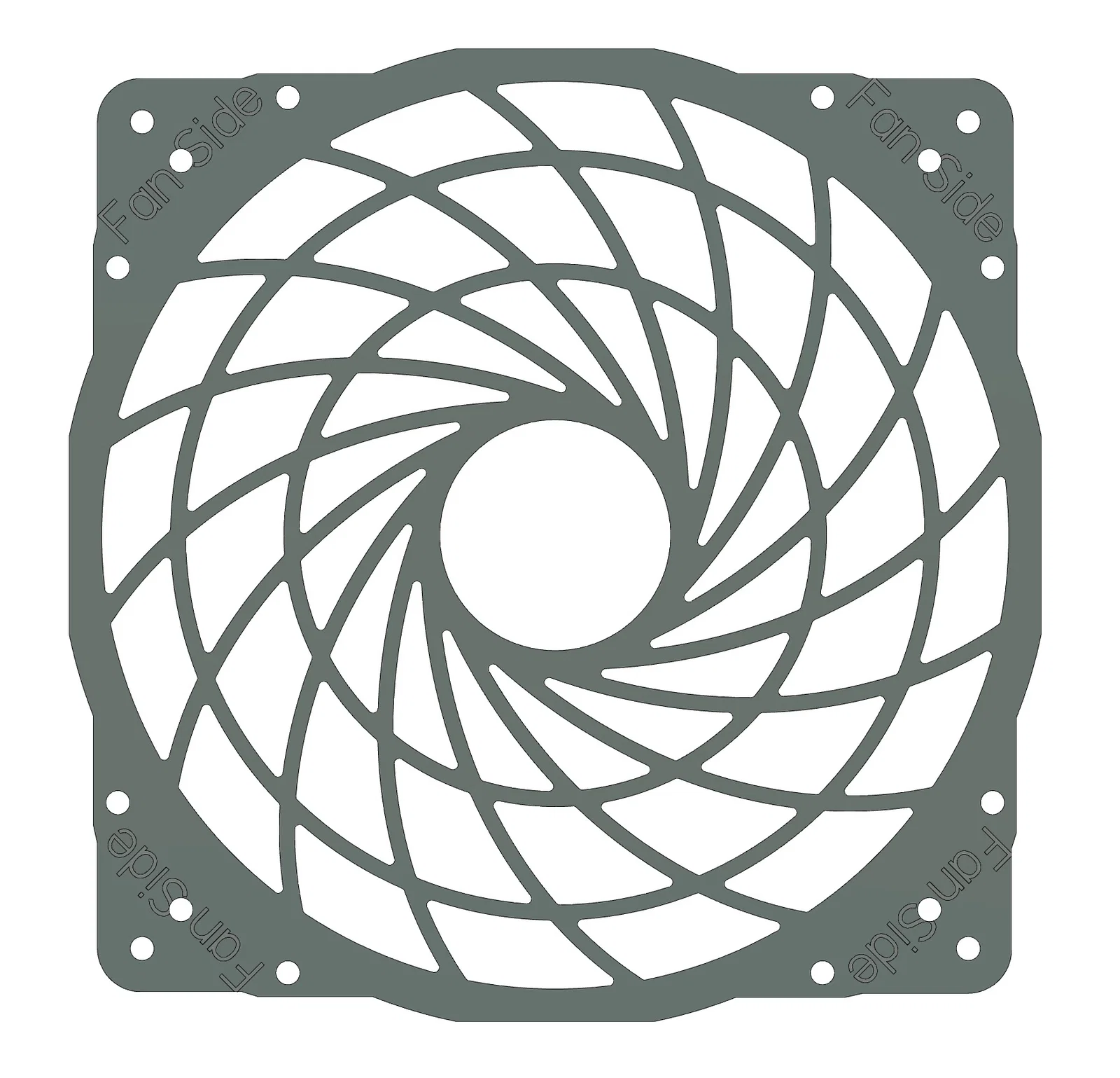 Được phóng to lên kích thước 200mm và tùy chỉnh khoảng cách lỗ bắt ốc phù hợp với các loại quạt 200mm (154x154, 110x180, 170x170 mm). Ngoài ra, mình đã thiết kế lại phần tai bắt ốc để khớp với bố cục của quạt NF-A20 thay vì hình vuông như các loại quạt thông thường.
