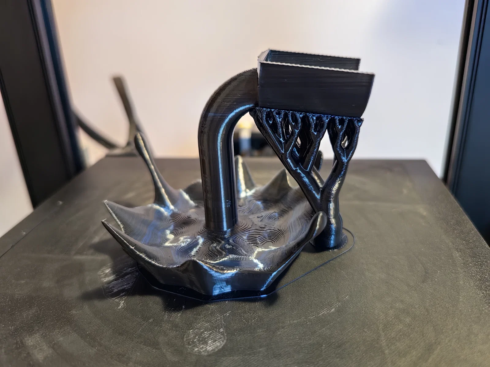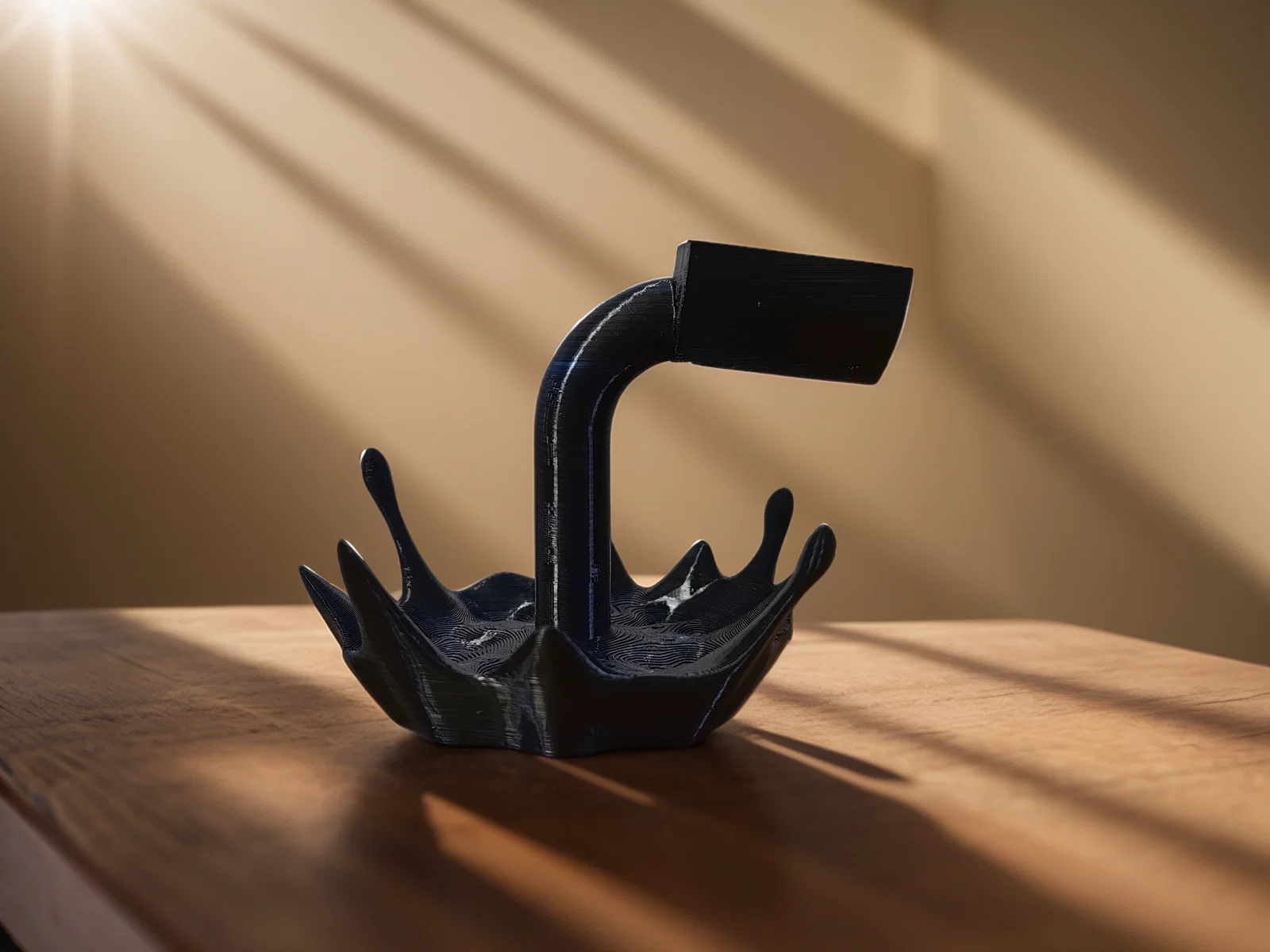 Thiết kế tạo cảm giác như một chai rượu đang bị đổ tràn ra ngoài. Đây là chiếc giá đỡ hoặc phụ kiện dùng để trưng bày chai rượu vang hoặc các loại đồ uống có cồn khác. Bạn cần sử dụng kỹ thuật in với hỗ trợ (support) để có kết quả tốt nhất.