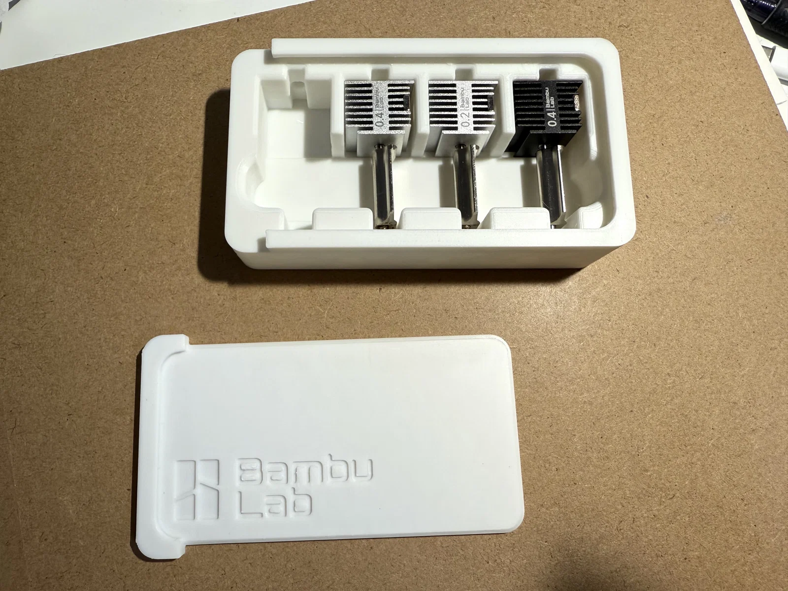 Với kết cấu chắc chắn, chiếc hộp này cung cấp 4 khe cắm riêng biệt, vừa vặn cho các dòng hotend của A1 series. Nắp đậy được thiết kế vừa khít, giúp bảo vệ các đầu in quý giá của bạn khỏi bụi bẩn và những va chạm vô tình trong quá trình sử dụng hàng ngày.