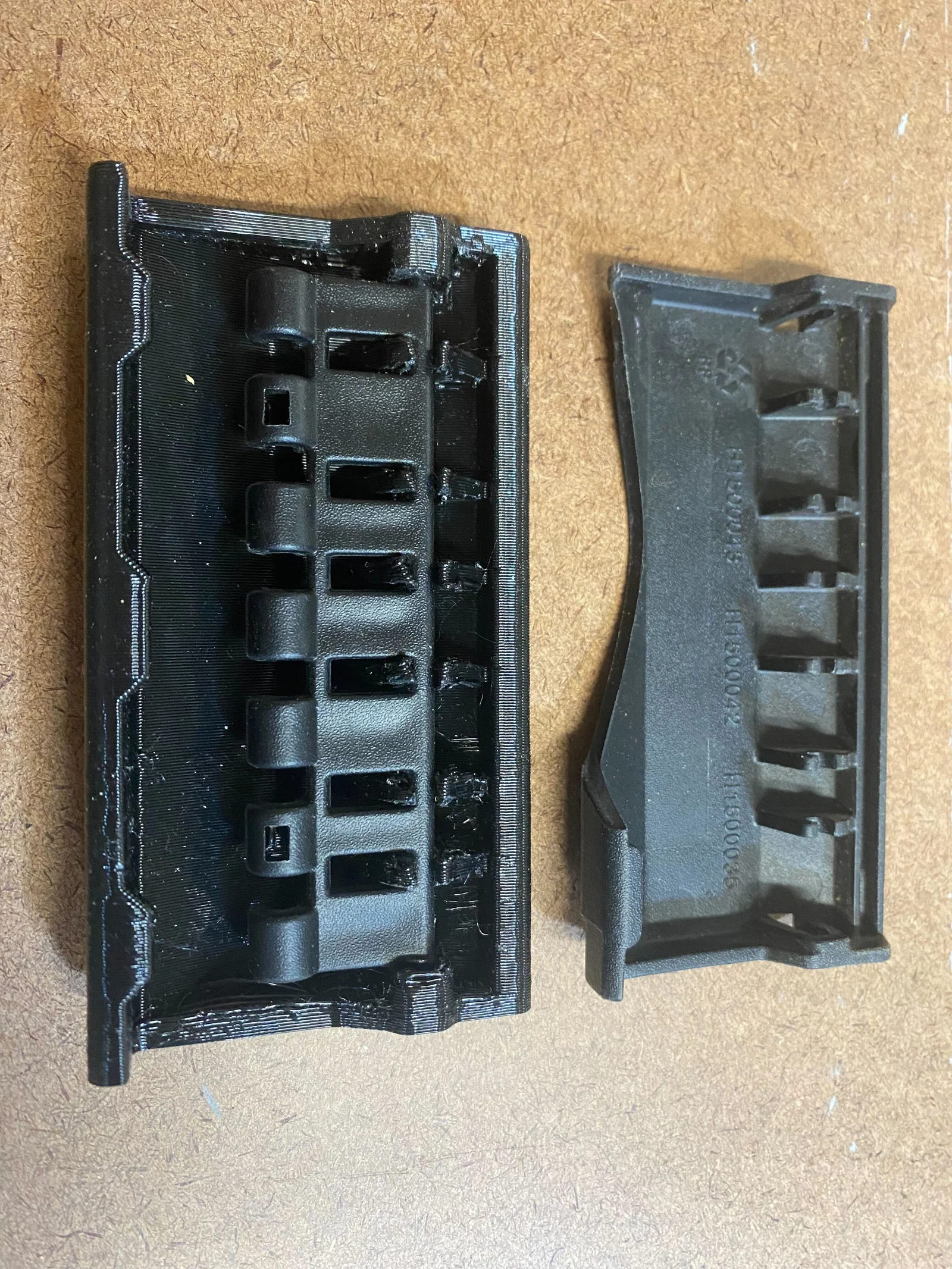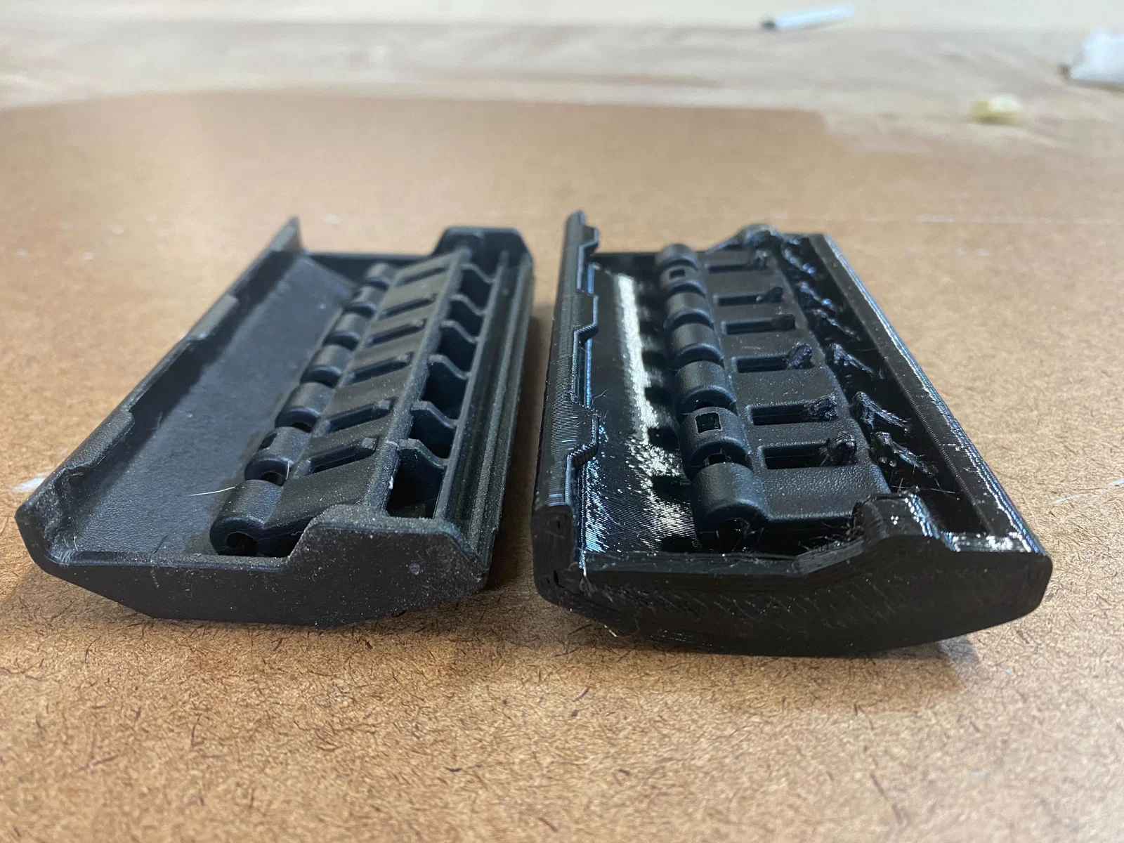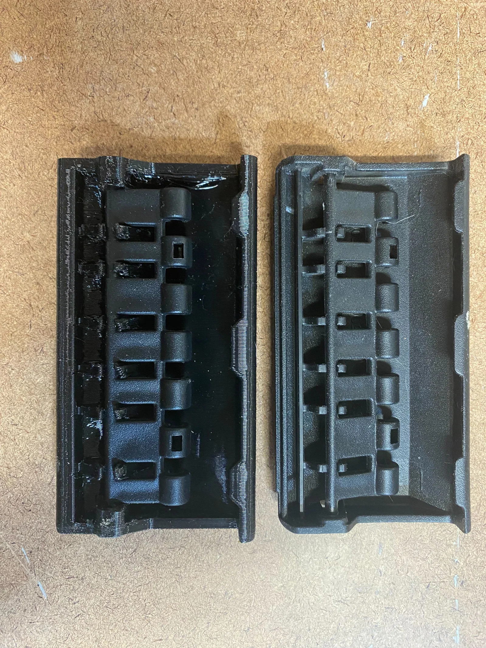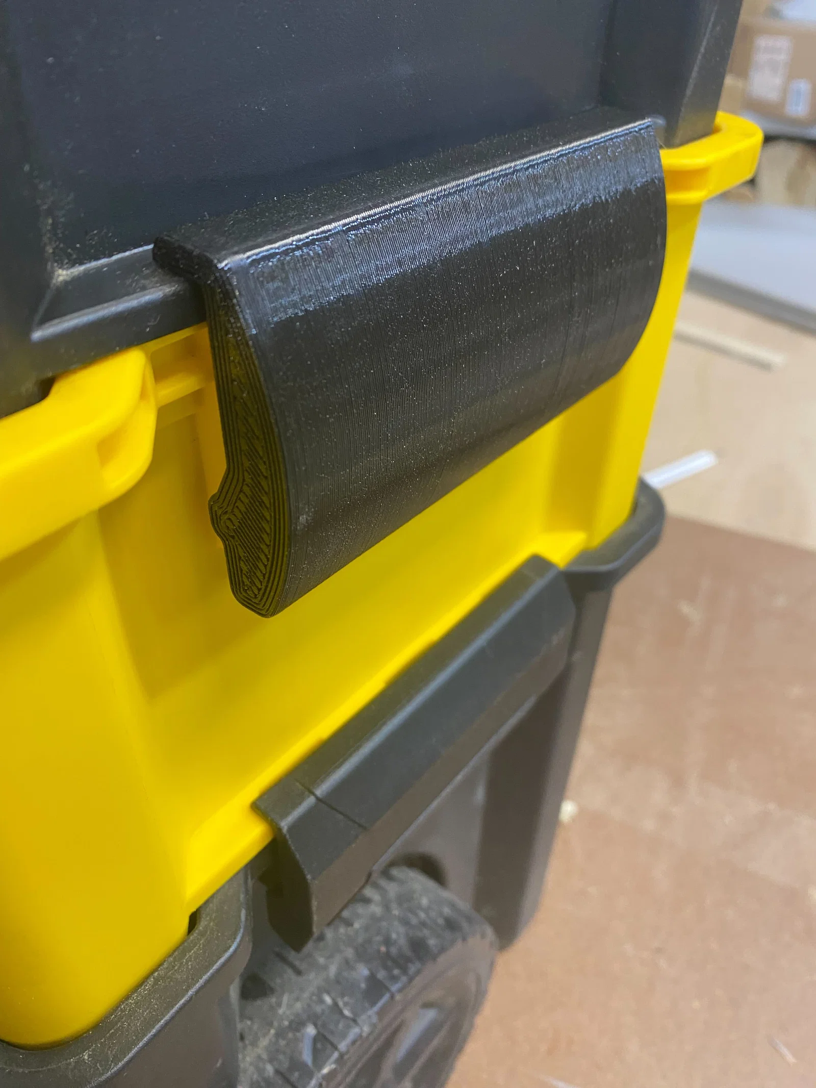 Đây là mẫu khóa cài (latch) thay thế dày và chắc chắn hơn dành cho hộp dụng cụ xếp chồng Stanley STST18631. Trong ảnh, bạn có thể thấy sự so sánh giữa mẫu thiết kế của mình với khóa cài nguyên bản. Đây là bản remix từ một mẫu khóa có khoảng cách bản lề đều nhau, còn mẫu này được thiết kế với kiểu khoảng cách lẻ cho phần bản lề. Có vẻ như Stanley đã thay đổi thiết kế ở một thời điểm nào đó. Mình đã in bằng nhựa PETG với đầu phun 0.8mm. Bạn có thể tìm thấy phần bản lề cho tay cầm khóa này tại đây: