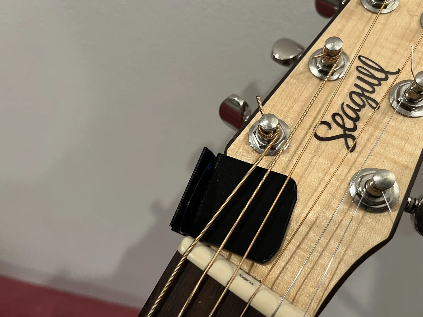 Xin giới thiệu với các bạn giải pháp của tôi: một chiếc giá đỡ pick đơn giản chỉ cần trượt vào đầu đàn guitar và cố định nhờ lực ma sát. Nó có thể chứa được khá nhiều pick mà vẫn tiện lợi y như những loại truyền thống.