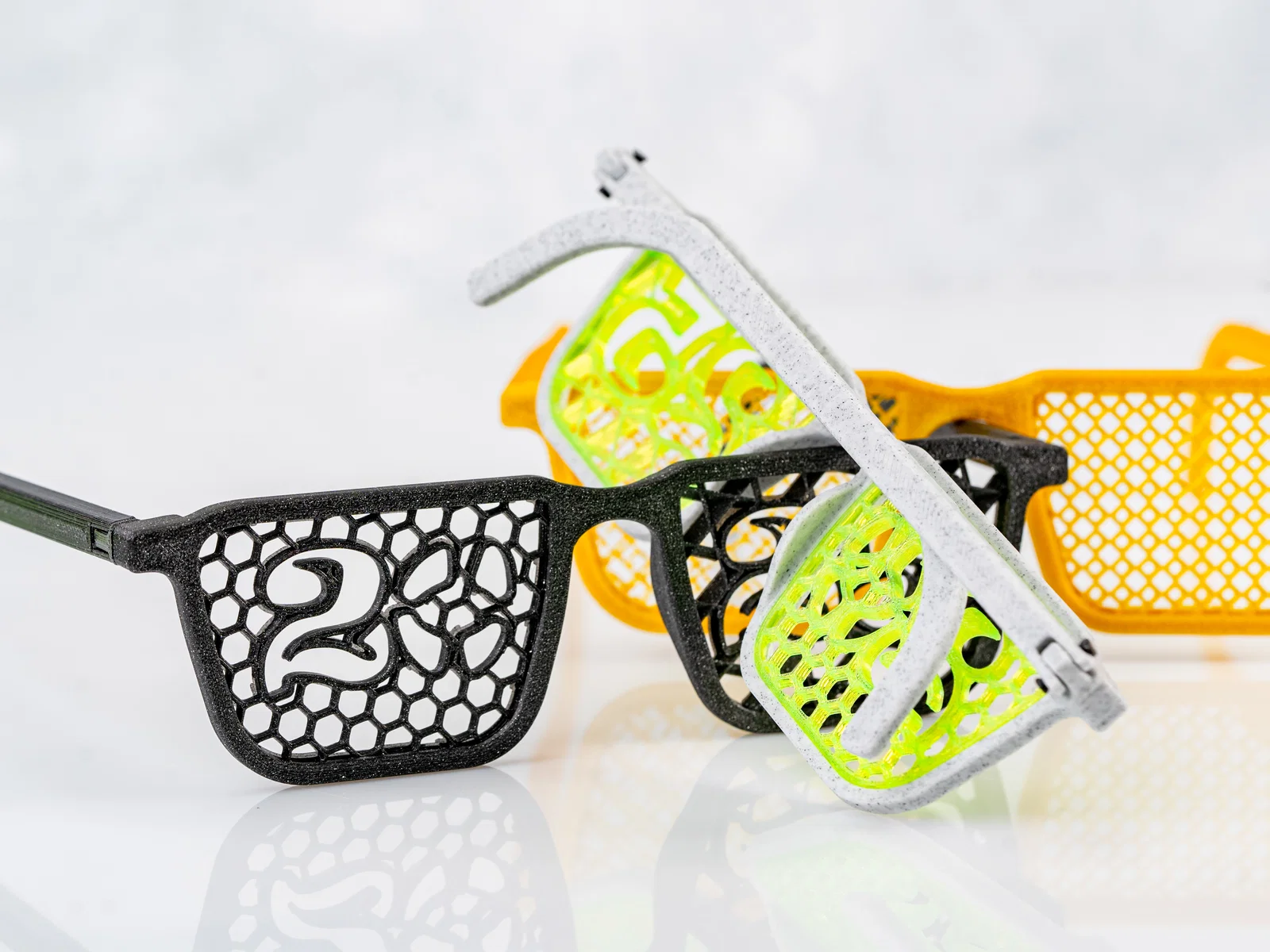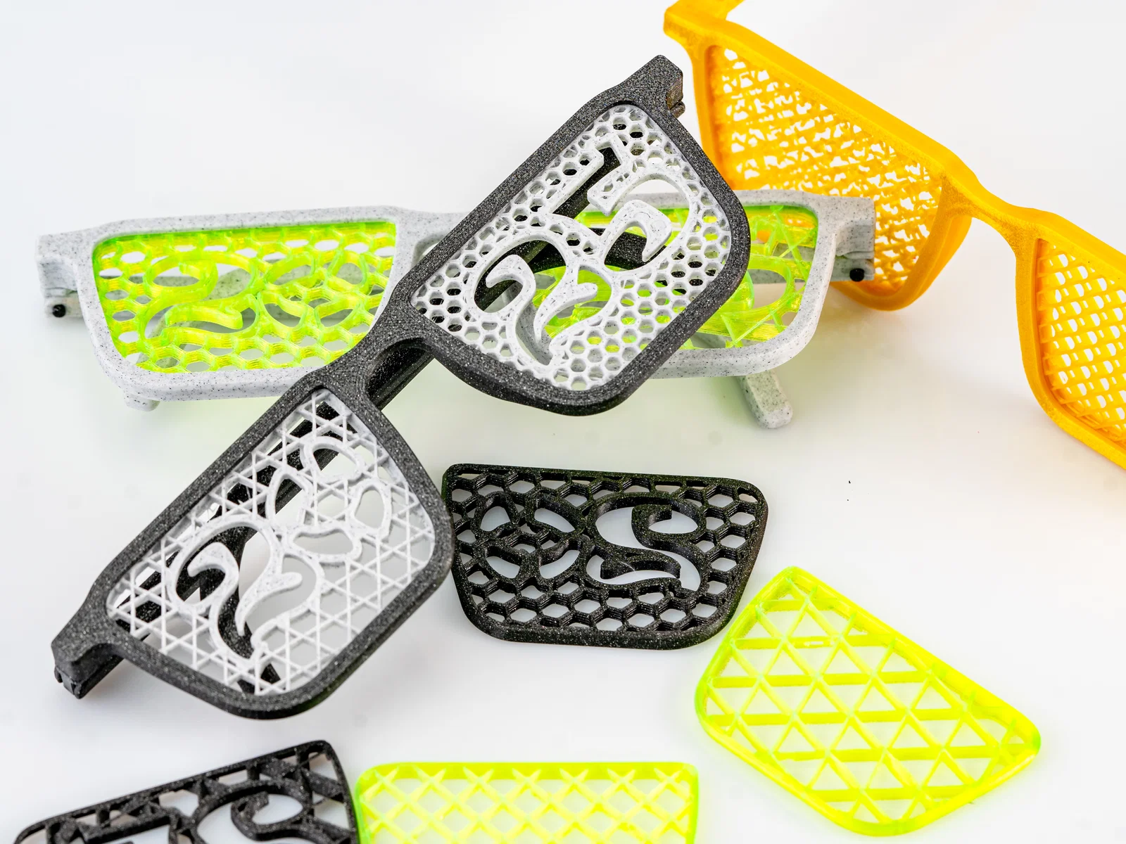 Mẫu kính in 3D phong cách cho tiệc tùng với thiết kế công thái học. Hỗ trợ nhiều loại gọng, miếng chèn tùy biến và dễ dàng lắp ráp mà không cần thêm phụ kiện. Phù hợp cho máy in FDM.