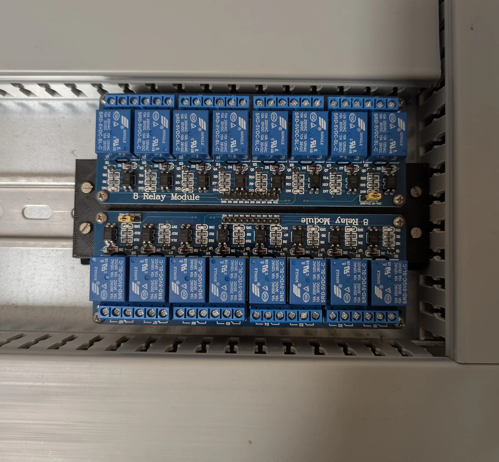 Bạn đang làm dự án tự động hóa với Arduino hay Raspberry Pi và cần lắp đặt các module relay vào tủ điện một cách gọn gàng? Đây chính là giải pháp in 3D hoàn hảo dành cho bạn. Bộ khung này được thiết kế chuyên dụng để giữ cố định hai module relay 8 kênh trên thanh ray DIN tiêu chuẩn (DIN rail), giúp hệ thống dây điện và linh kiện trong tủ điều khiển của bạn trở nên ngăn nắp, chuyên nghiệp và an toàn hơn đáng kể.