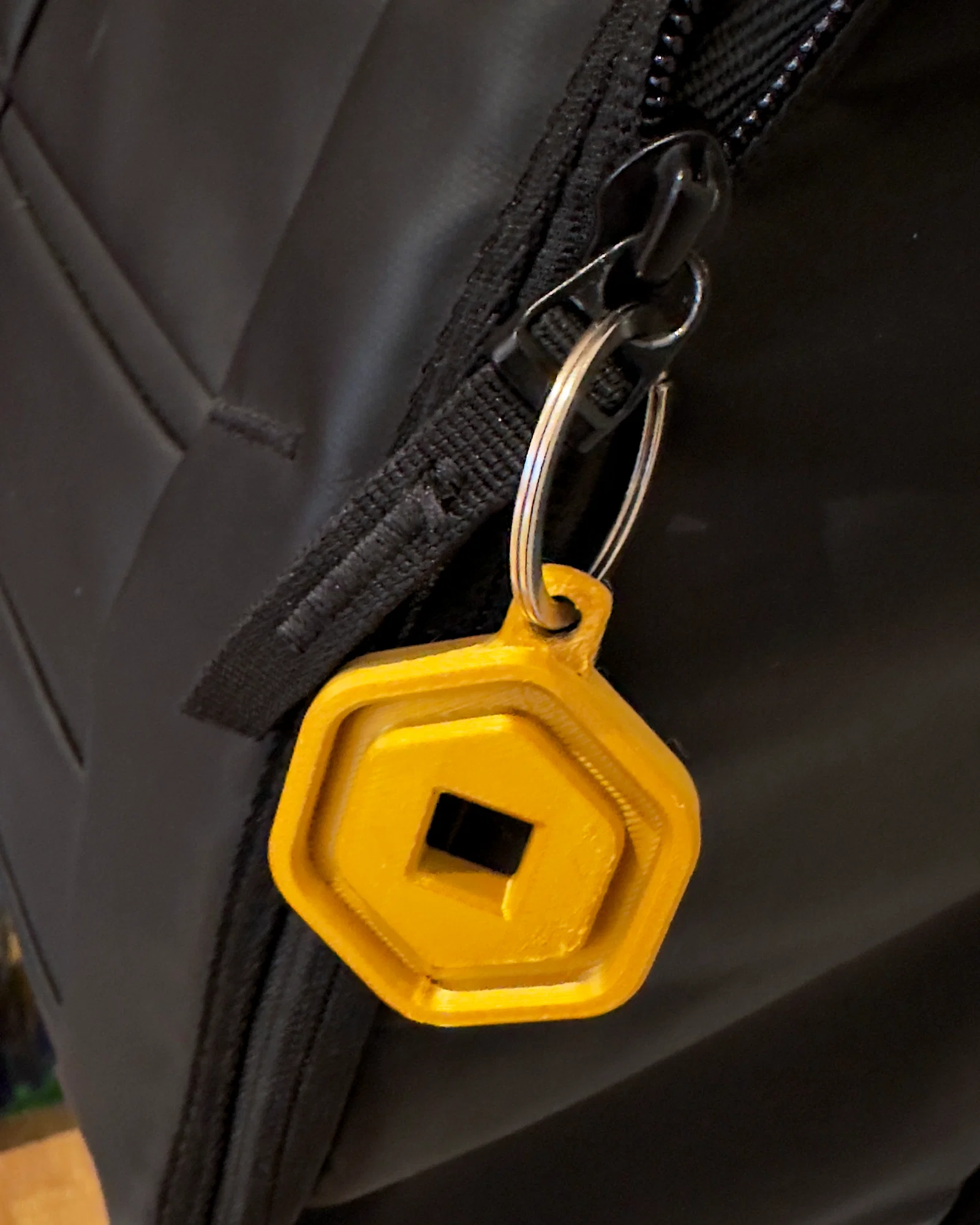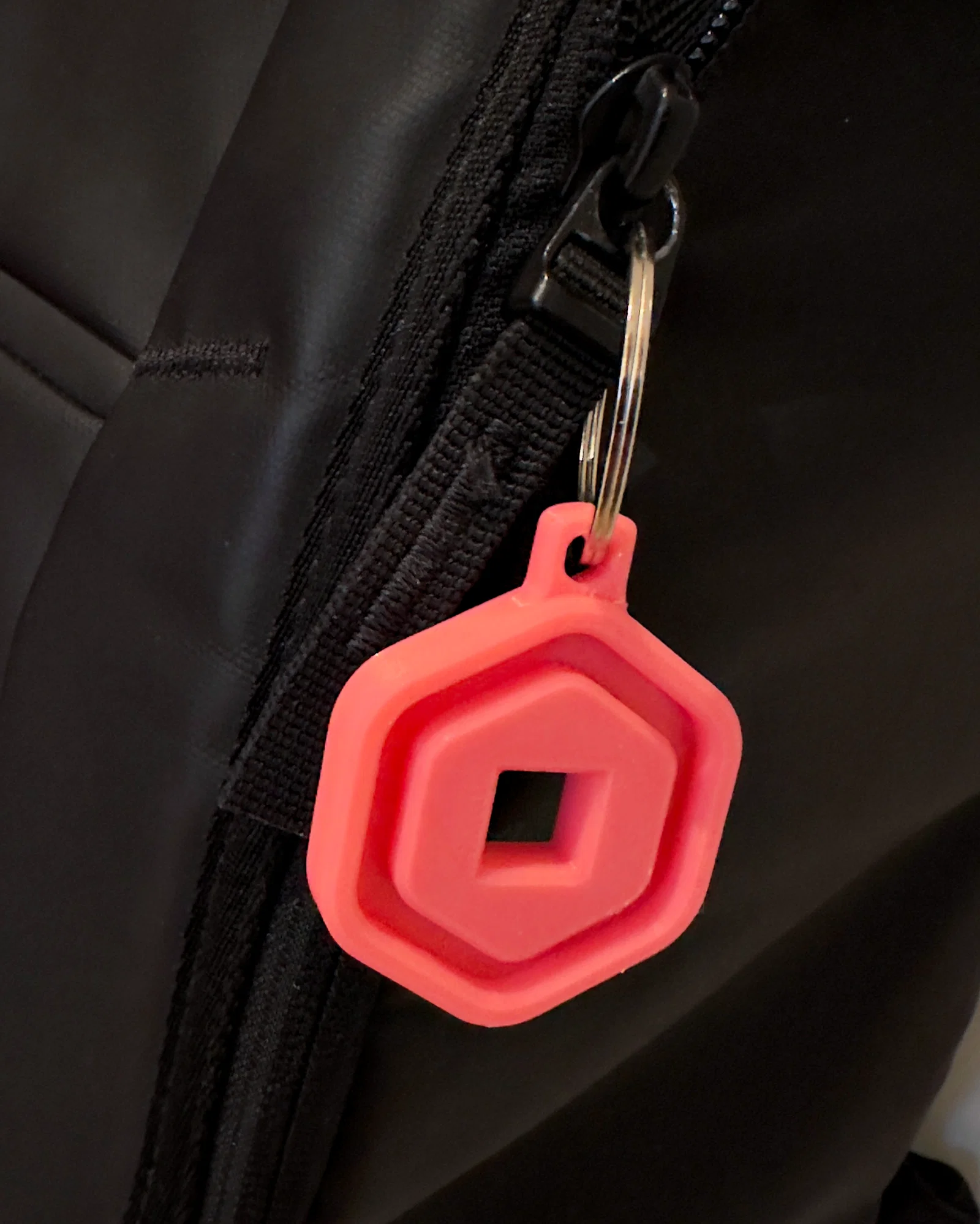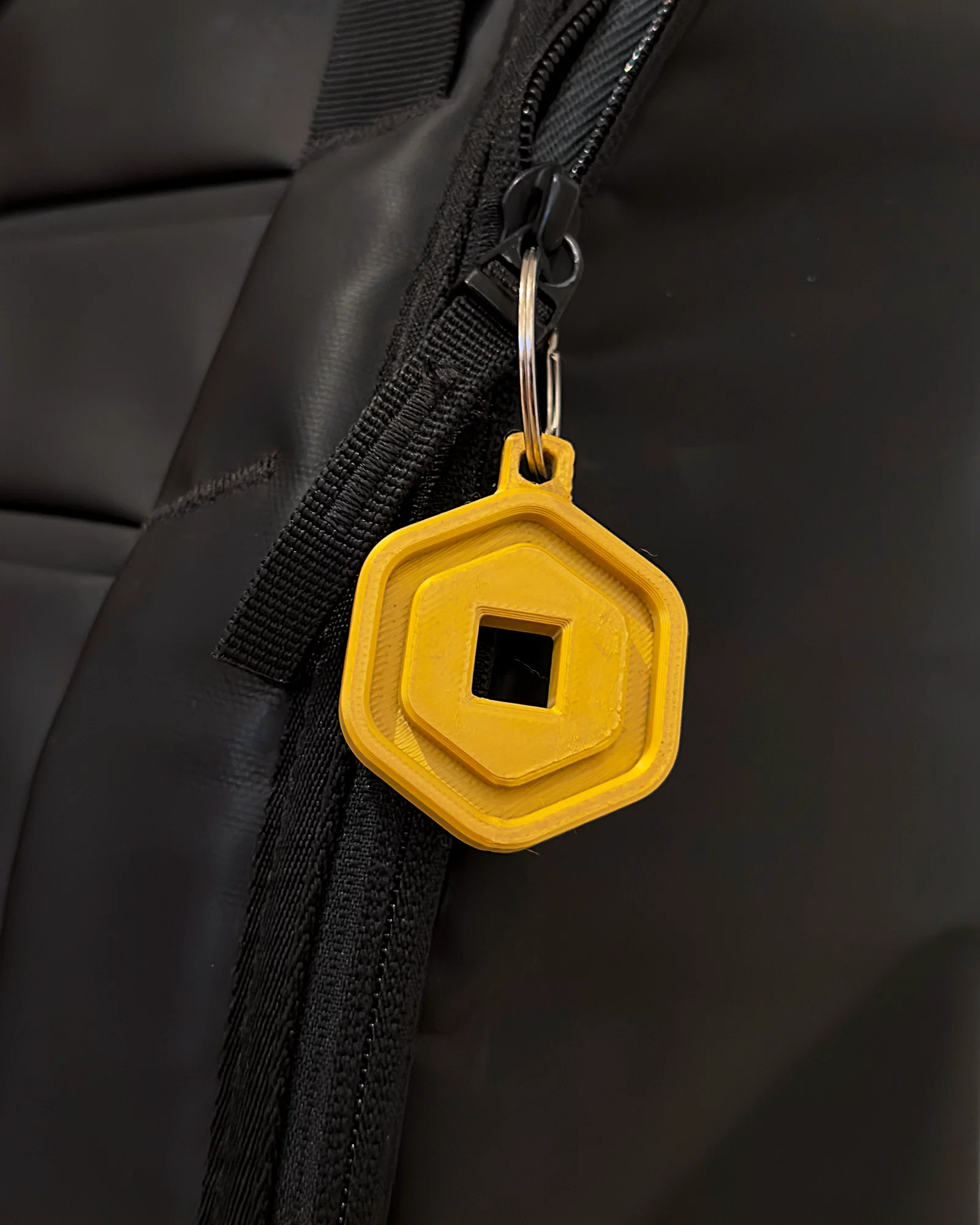 Đây là phiên bản móc khóa của mẫu đồng xu Roblox mà mình đã chia sẻ trước đó. So với mẫu đồng xu Robux bình thường, phiên bản này được thiết kế thêm phần lỗ để gắn móc khóa. Bạn sẽ cần dùng một chút support ở ngay vị trí điểm gắn móc khóa này. Mình cũng đã phóng to đồng xu lên 125% để nhìn cho đẹp hơn. In bằng nhựa PLA Silk Gold nhìn rất xịn, nhưng mình nghĩ dùng các loại màu sắc độc lạ khác trông cũng sẽ rất tuyệt vời đấy 🥳 Bạn có thể gắn thêm khoen móc khóa tùy ý, ví dụ như loại này trên Aliexpress (liên kết tiếp thị), hoặc loại này trên Temu (liên kết tiếp thị). Mẫu này được làm từ tệp SVG mà mình tìm thấy trong kho tài nguyên chính thức dành cho nhà phát triển của Roblox.