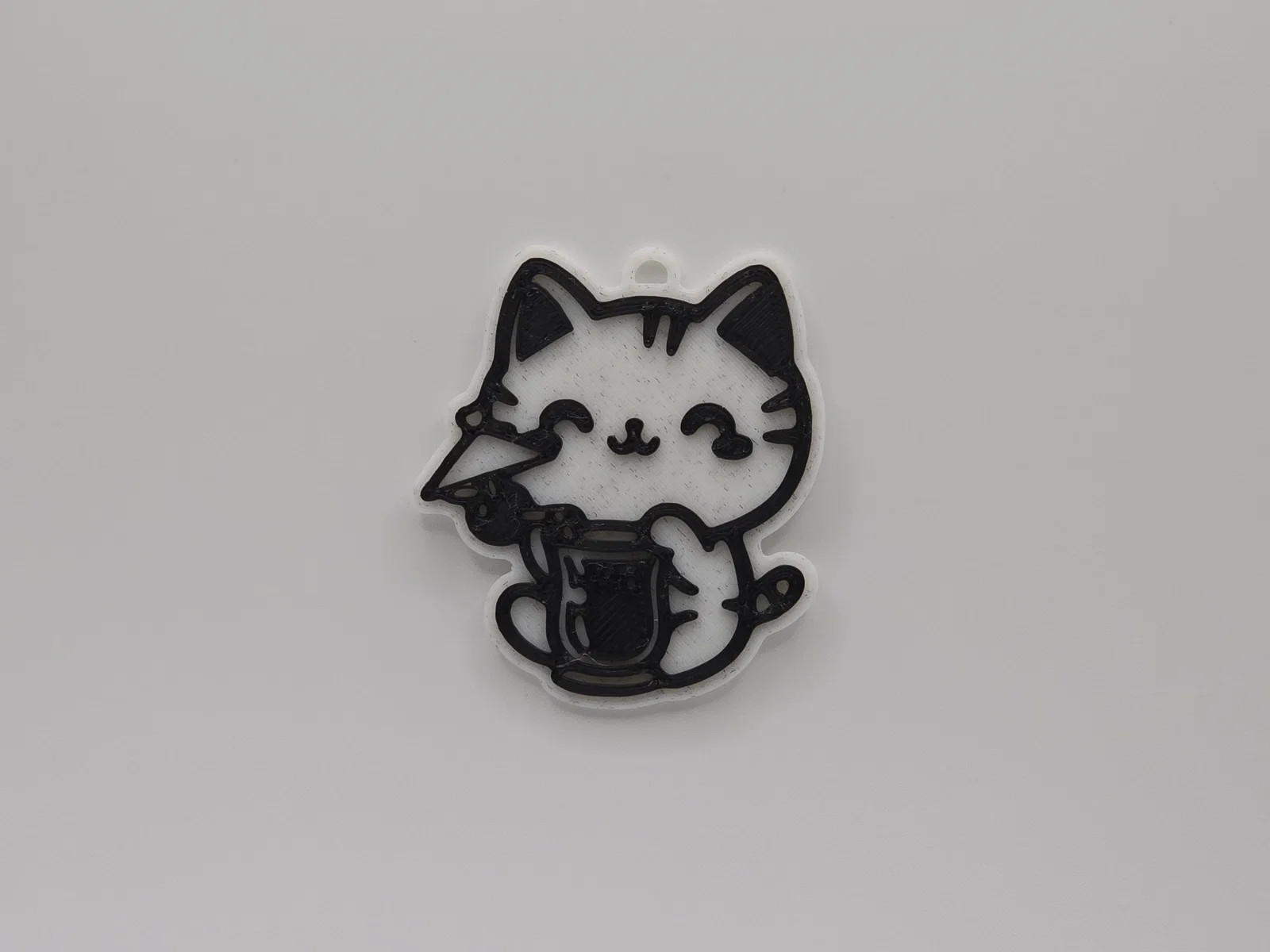 Tự tay in ngay một chiếc móc khóa hình mèo cực kỳ đáng yêu đang thưởng thức đồ uống. Mẫu này rất dễ thực hiện, không cần hỗ trợ in (support), phù hợp cho cả người mới bắt đầu. Hãy thử in bằng nhựa PLA để có thành phẩm xinh xắn nhất nhé!