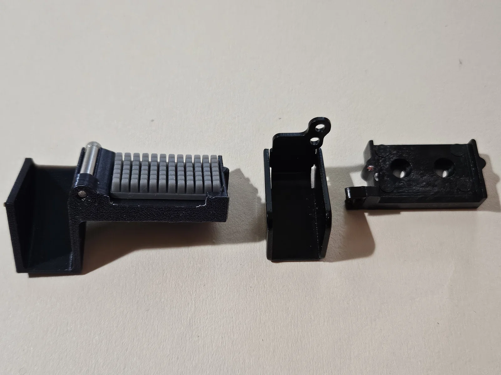Bản mod cũng loại bỏ nhu cầu sử dụng (1) con lăn, (1) ốc M2.5 & máng dẫn kim loại. Nó tận dụng lại các ốc M3, đai ốc M3 nylok và lò xo sẵn có.