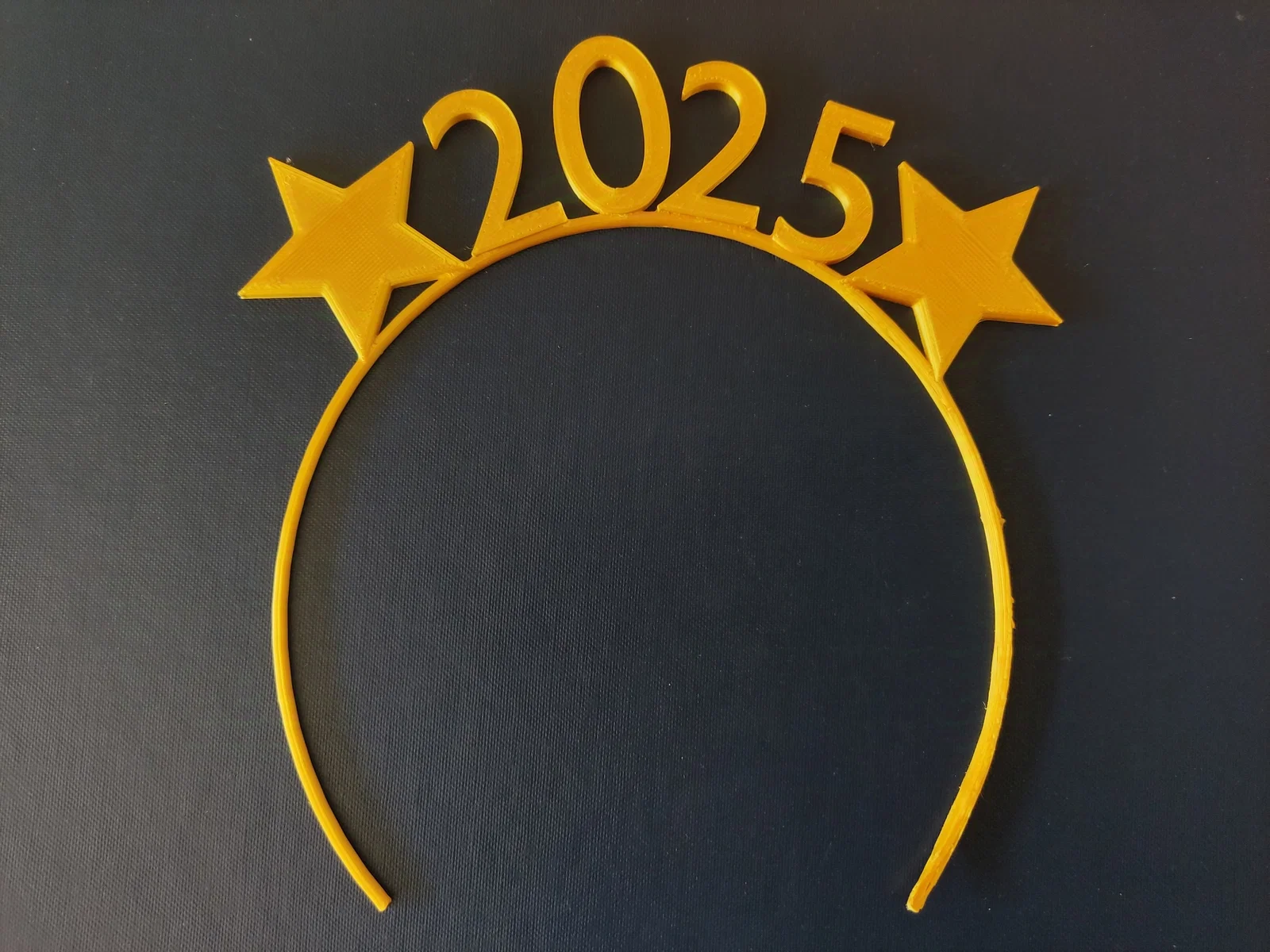 Thiết kế của chiếc bờm này khá tối giản nhưng vô cùng tinh tế, tập trung vào con số 2025 làm chủ đạo, kết hợp cùng hình ảnh ngôi sao may mắn ở hai bên. Đây là phụ kiện phù hợp cho cả trẻ em và người lớn, đặc biệt lý tưởng để chụp ảnh "check-in" cùng gia đình và bạn bè trong thời khắc chuyển giao giữa năm cũ và năm mới. Bạn có thể tự in tại nhà với màu sắc yêu thích của riêng mình để tạo ra phong cách cá nhân độc bản.