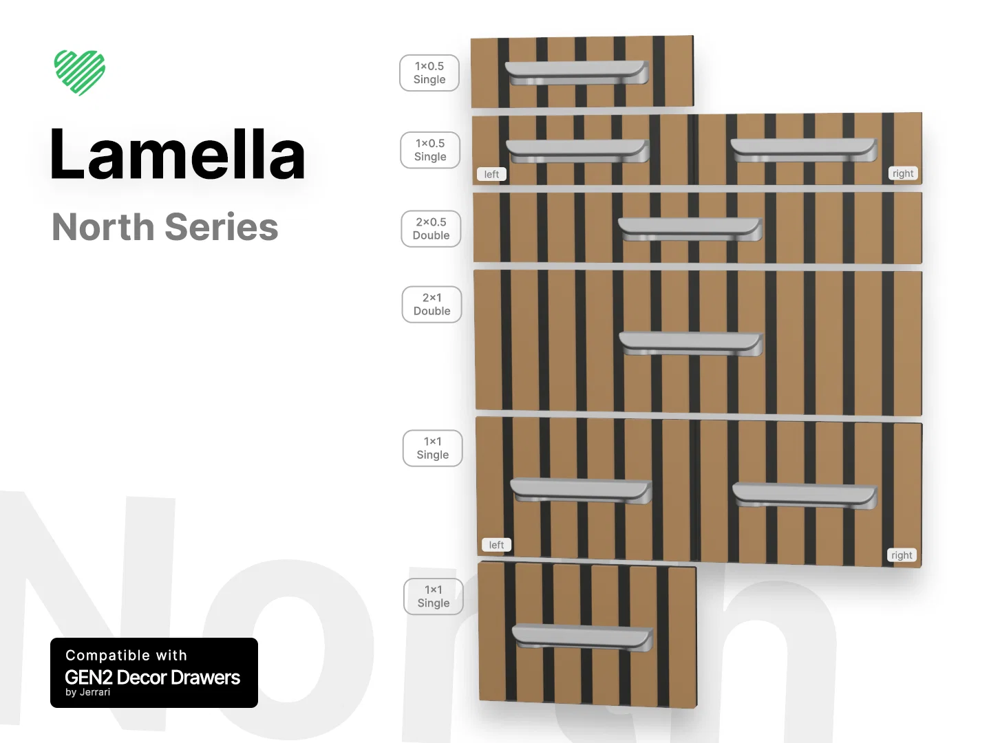 Các tấm ốp mặt ngoài với thiết kế phong cách Scandinavia tinh tế dành cho ngăn kéo GEN2 Decor. Hướng dẫn chi tiết cách in úp mặt và lắp ráp tay cầm để tạo điểm nhấn sang trọng cho không gian lưu trữ của bạn.