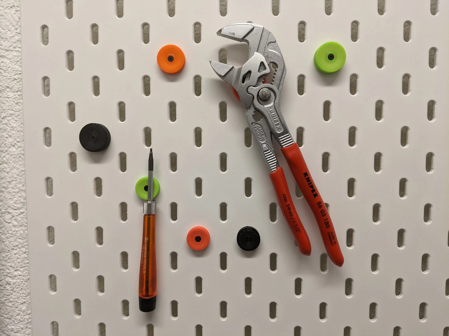 Đây là nam châm dành cho bảng treo đồ Ikea Skadis. Loại này cực kỳ chắc chắn, không lo bị rơi hay lỏng lẻo khi bạn gắn hoặc lấy đồ ra khỏi bảng. Sản phẩm sử dụng hệ thống lắp T-Nuts giúp cố định chặt, không gây rung lắc và có độ bám rất mạnh.