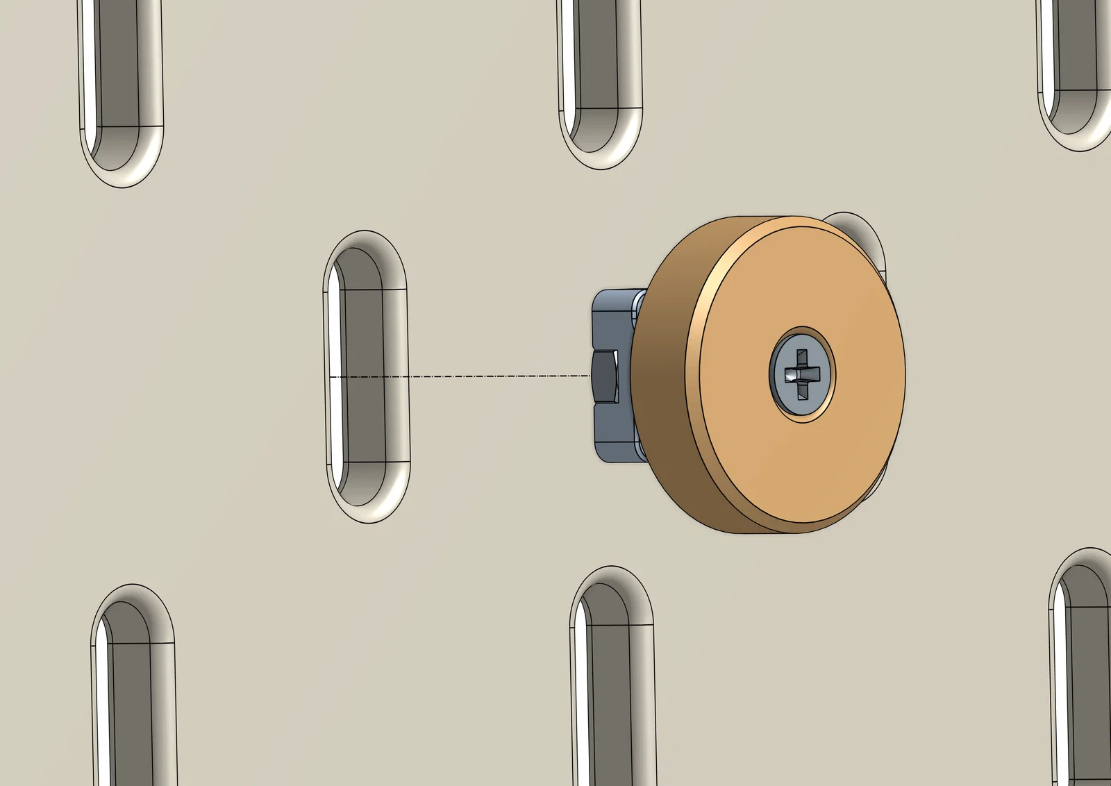 Bộ nam châm siêu chắc cho bảng treo Ikea Skadis, sử dụng hệ thống T-Nuts chống rung lắc. Thiết kế cho phép tùy chỉnh kích thước linh hoạt trên Onshape để phù hợp với mọi loại nam châm neodymium mà bạn có.