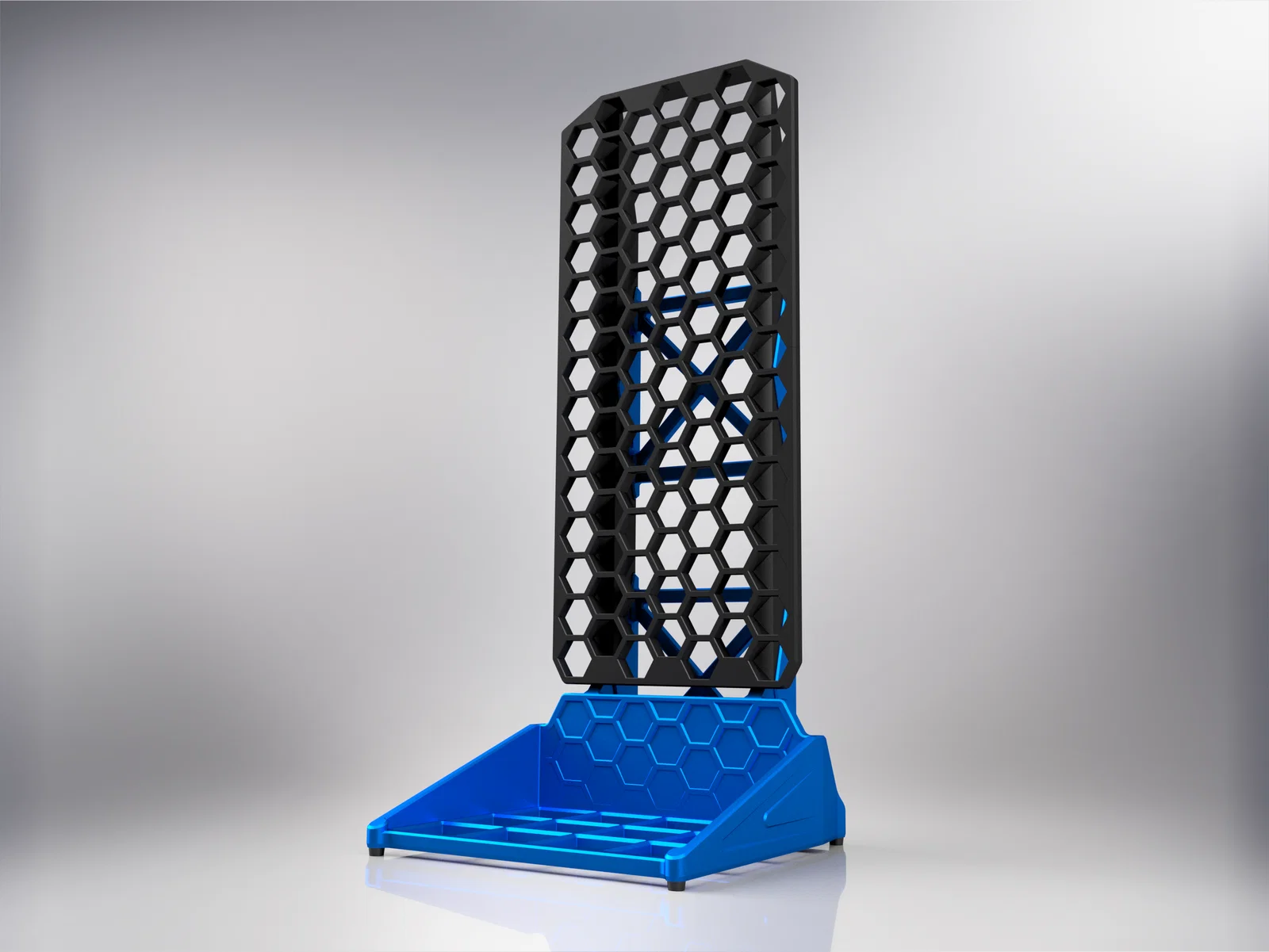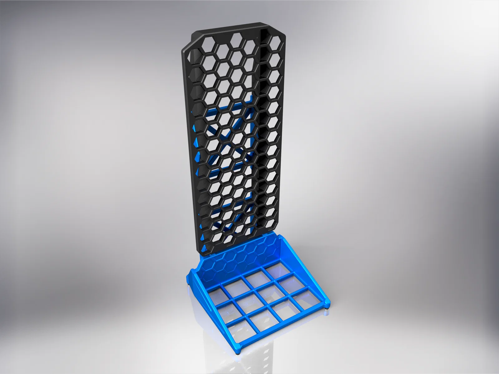- Phần đế dạng lưới tương thích với các phụ kiện Gridfinity tiêu chuẩn 42mm