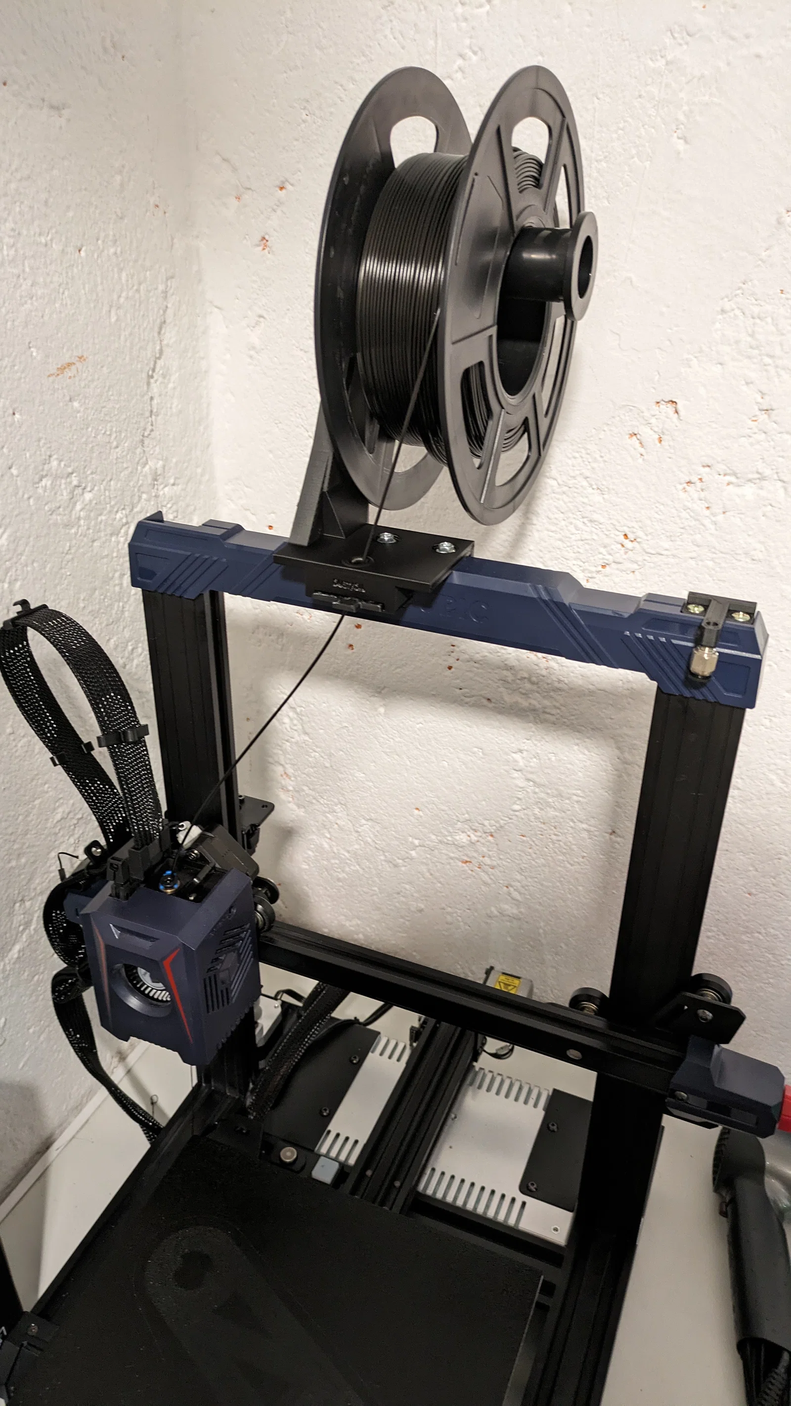Giá đỡ cuộn nhựa gắn trên máy Kobra 2 Neo, được cải tiến thêm bộ phận dẫn nhựa và hộp lọc bụi hoặc dầu để bảo vệ filament tốt hơn. Có kèm tùy chọn phiên bản 3 đơn giản cho anh em dễ sử dụng.