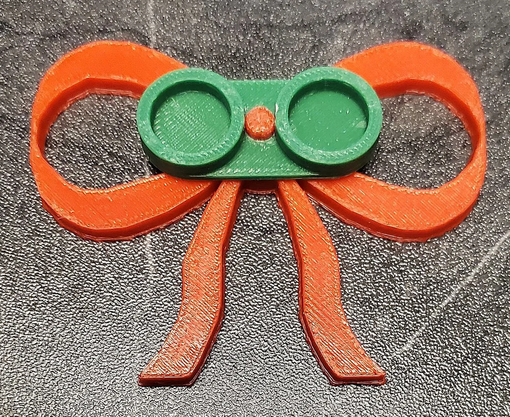 Mình đã thiết kế lại phiên bản chiếc nơ này để có thể in phẳng dễ dàng hơn, đồng thời làm thêm một cái adapter giúp gắn nó vào chính giữa một trong các "nhánh" của vòng nguyệt quế.