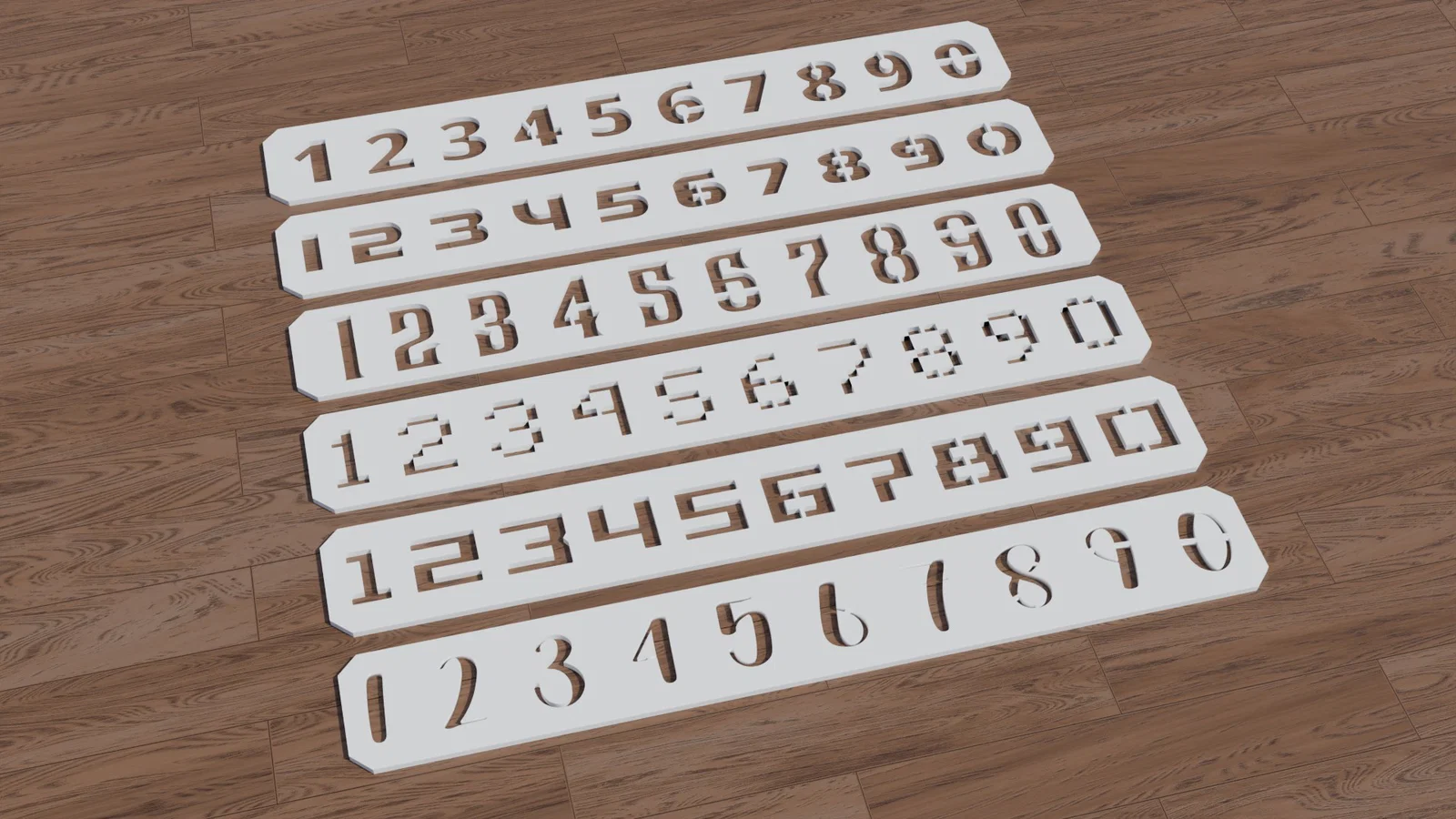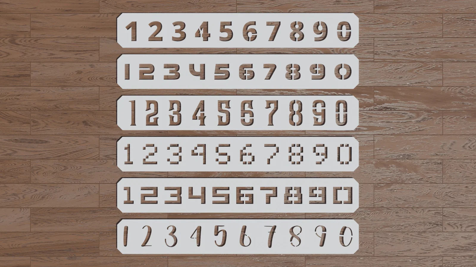 Bộ khuôn tô số 0-9 in 3D với 6 phông chữ khác nhau. Sản phẩm hỗ trợ đắc lực cho công việc sơn vẽ, làm thủ công, trang trí tường hoặc đánh dấu mô hình một cách dễ dàng và tiện lợi.
