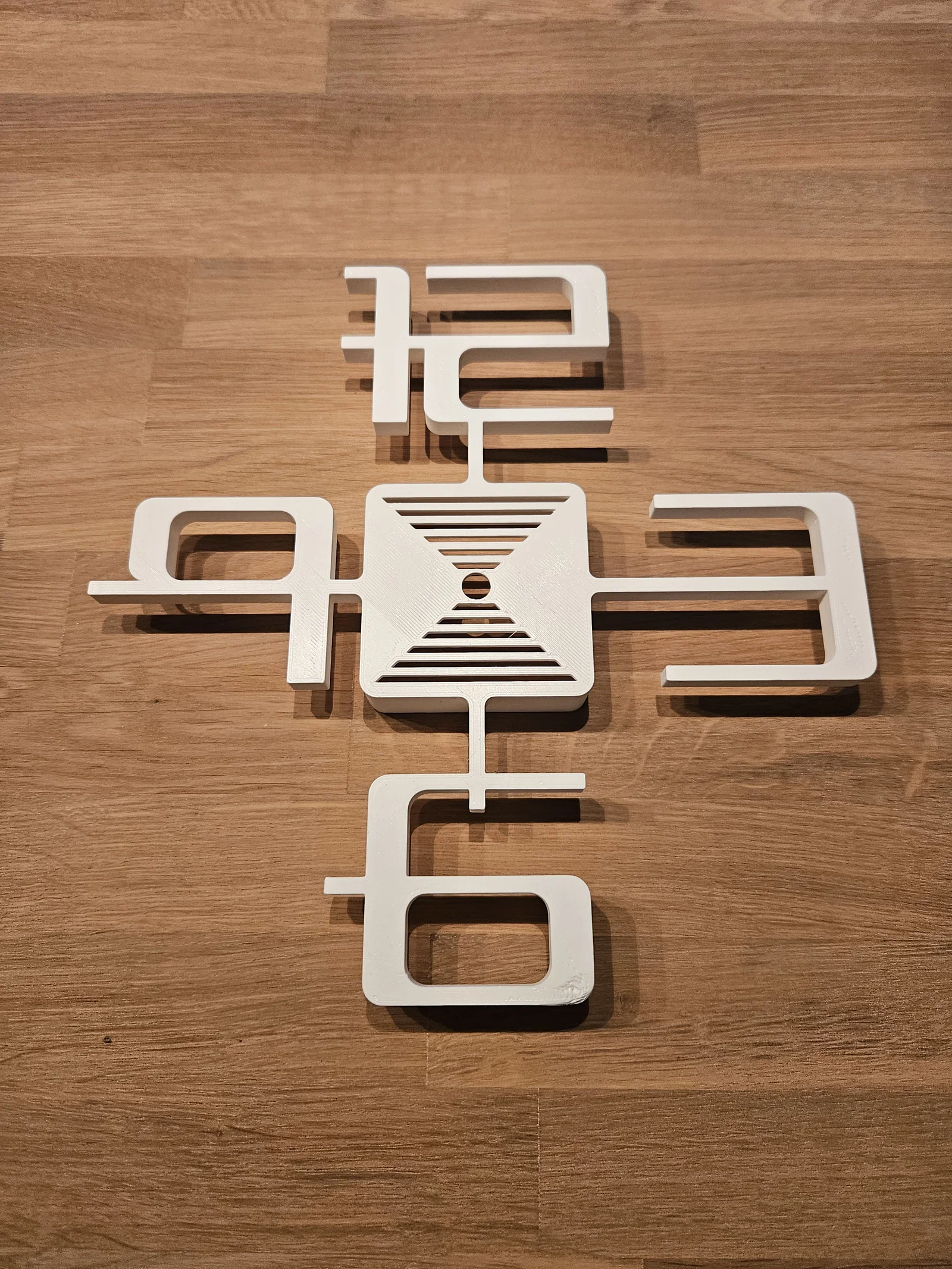Các phần viền ngoài chạy dọc theo chu vi của đồng hồ. Mình đã chia chúng thành 5 phần riêng biệt, bao gồm một phần trung tâm và 4 con số. Bạn không cần máy in nhiều màu cho thiết kế này, chỉ cần thay nhựa (filament) sau mỗi lần in là được.
