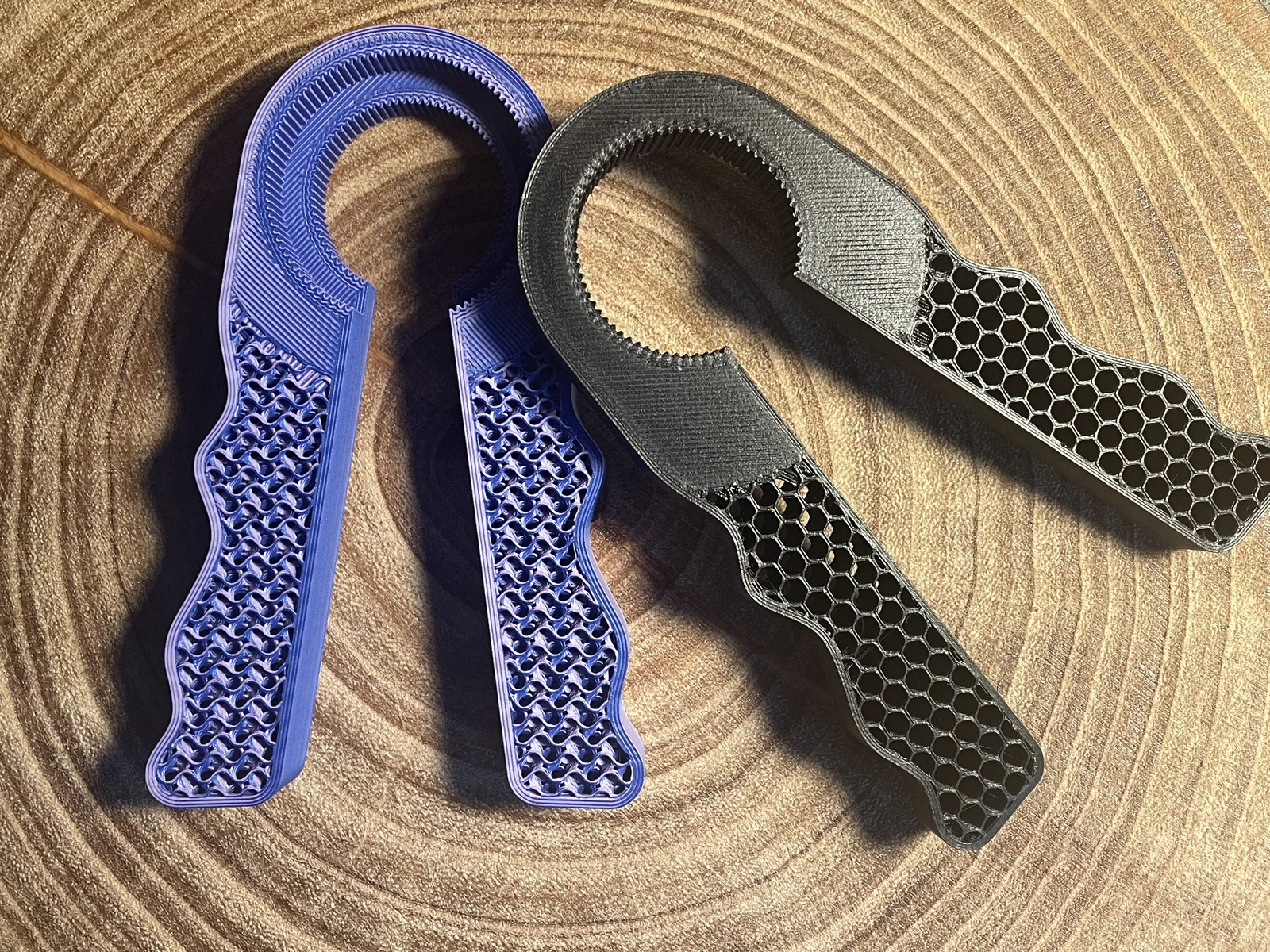 Dự án này giúp việc mở nắp chai trở nên dễ dàng hơn, đặc biệt thiết kế dành riêng cho ông bà hoặc những người có lực cầm nắm yếu. Bản V2 được cải tiến để bền bỉ hơn, hỗ trợ nhiều kích thước nắp chai khác nhau như 29.5mm, 31.5mm và 39.5mm.