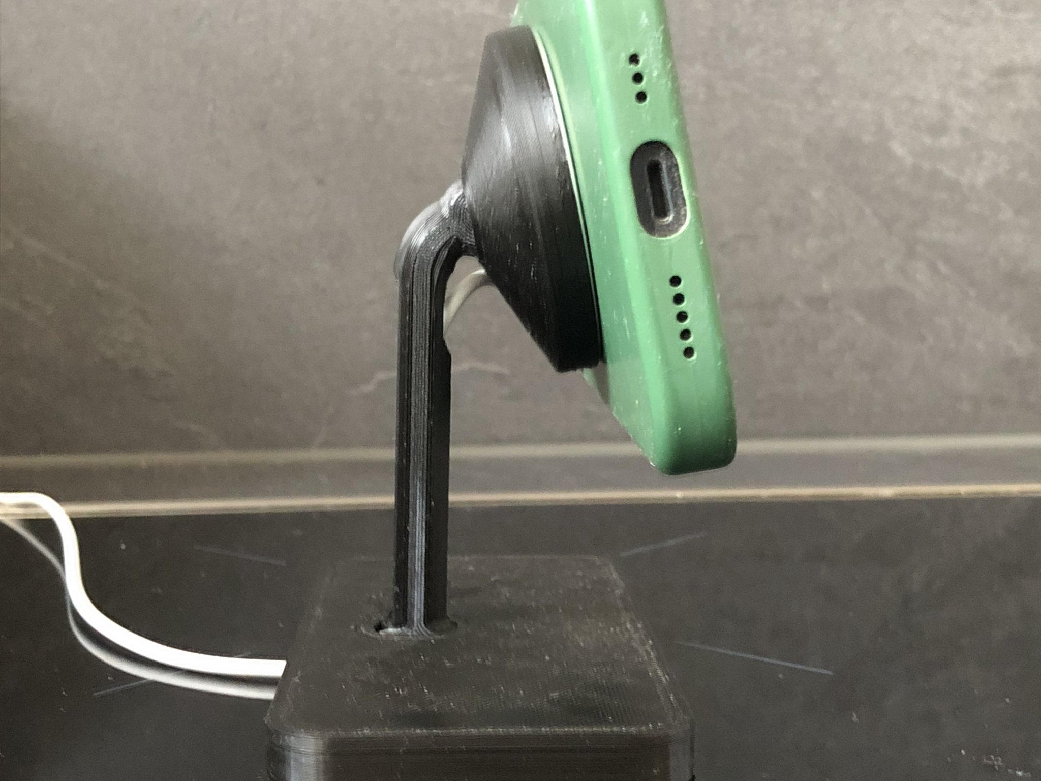 Thiết kế hoạt động hoàn hảo với iPhone 13 của tôi theo chiều ngang và chiều dọc. Tôi đã thêm một khớp cầu để thay đổi nhẹ góc của điện thoại của bạn. Ngoài ra, bạn có thể xoay bộ chuyển đổi magsafe để thay đổi hướng của cáp. Tôi đã sử dụng bộ chuyển đổi Magsafe của Apple với usb-c. Cáp có thể được giấu trong trục và đế. Hầu hết tất cả các bộ phận có thể được in đồng thời trong một lần in. Tôi cũng đã thêm một số chân cao su, bạn có thể in chúng bằng TPU riêng biệt. Tôi đã sử dụng keo siêu dính để giữ chúng ở vị trí. Các bộ phận khác khớp chặt với nhau, vì vậy bạn sẽ không cần phải dán chúng tùy thuộc vào cài đặt slicer của bạn. Bộ sạc magsafe được cố định bằng băng dính hai mặt.