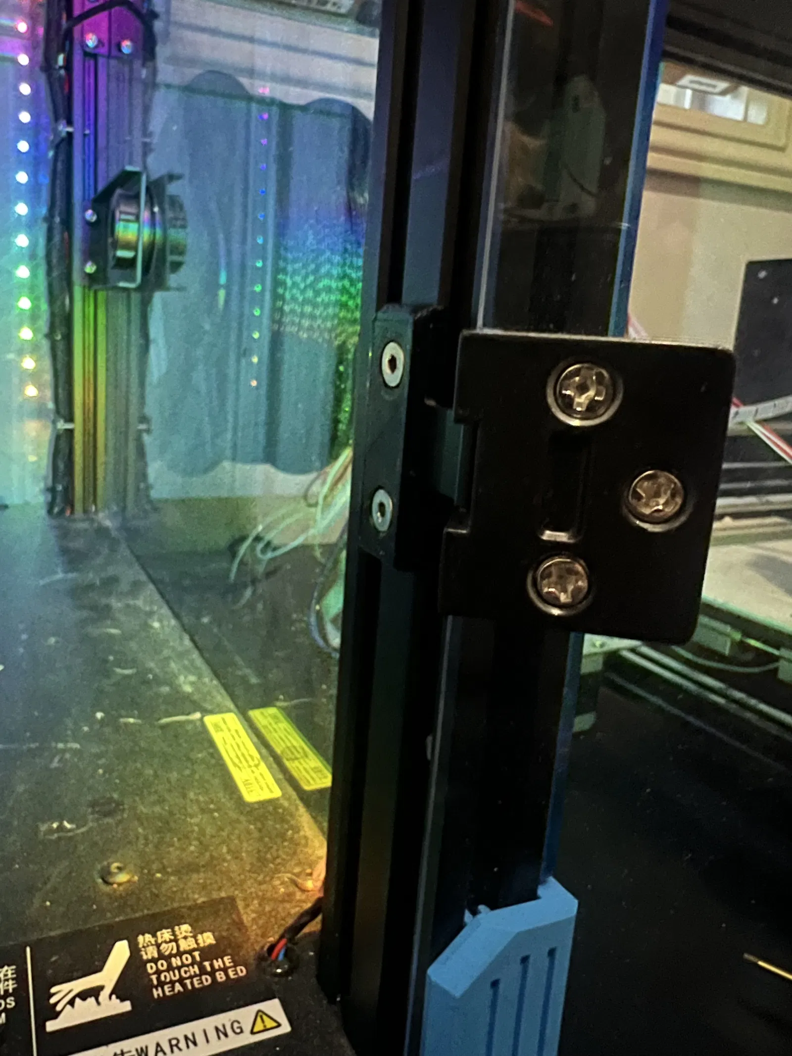 Cửa trên máy Ender 6 của tôi bị lỏng lẻo ngay từ ngày đầu tôi mua về. Trên máy của tôi, giá đỡ bản lề quá mỏng để siết chặt bằng ốc M4 và các ốc lục giác chỉ làm cho các cánh cửa bị cạ vào nhau. Vì vậy, cái nắp nhỏ này là một bản in đơn giản để khắc phục điều đó.