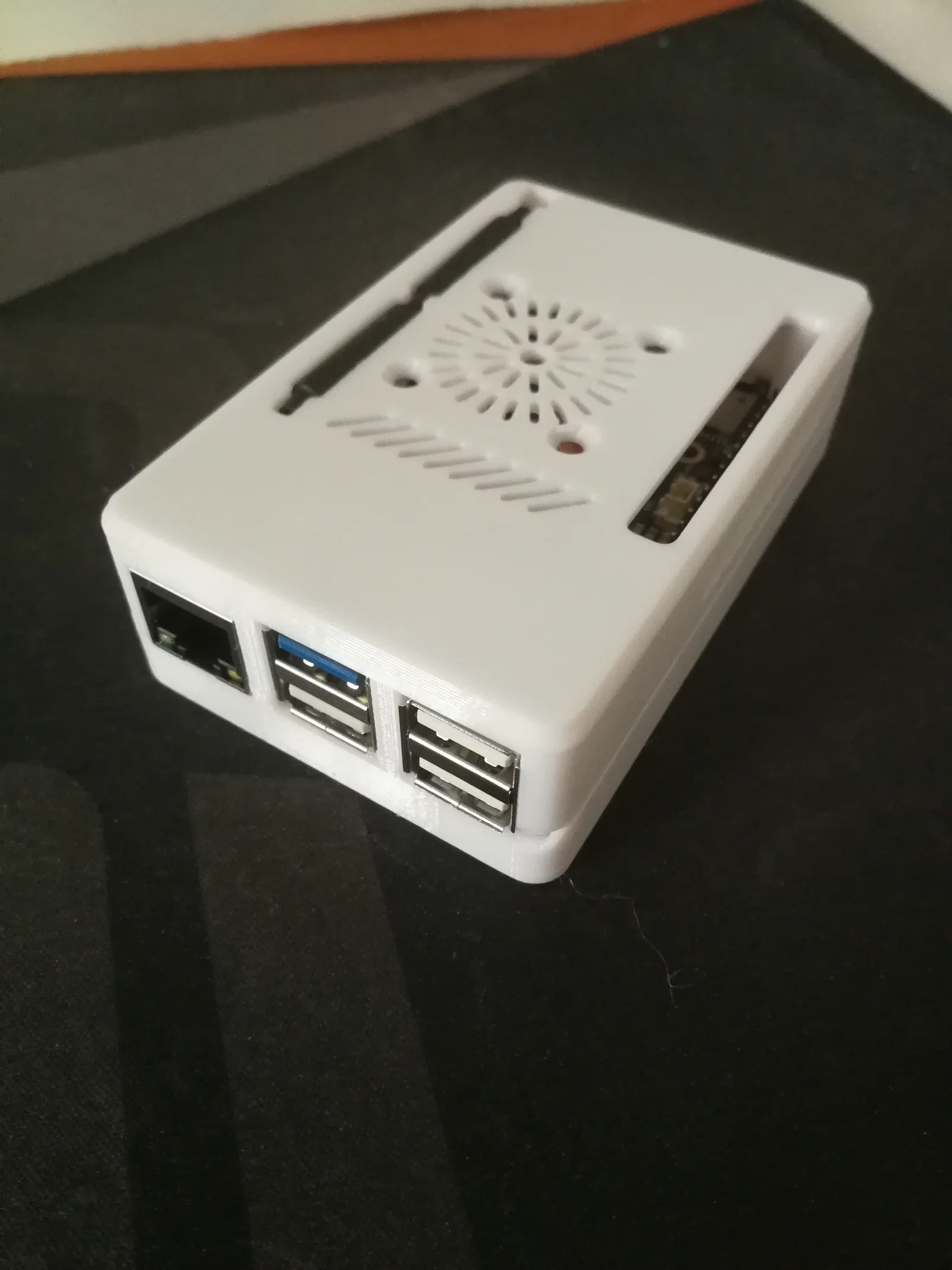 Điểm ấn tượng nhất của thiết kế này chính là khả năng tùy biến cao. Hộp được tích hợp sẵn vị trí lắp quạt tản nhiệt 3010, giúp duy trì nhiệt độ ổn định ngay cả khi máy hoạt động với cường độ cao. Ngoài ra, các khe cắm được tính toán kỹ lưỡng, đảm bảo bạn vẫn dễ dàng truy cập vào các cổng I/O, khe cắm thẻ nhớ SD và đặc biệt có hẳn một rãnh riêng để bảo vệ ăng-ten, giúp tín hiệu kết nối luôn ổn định và an toàn.
