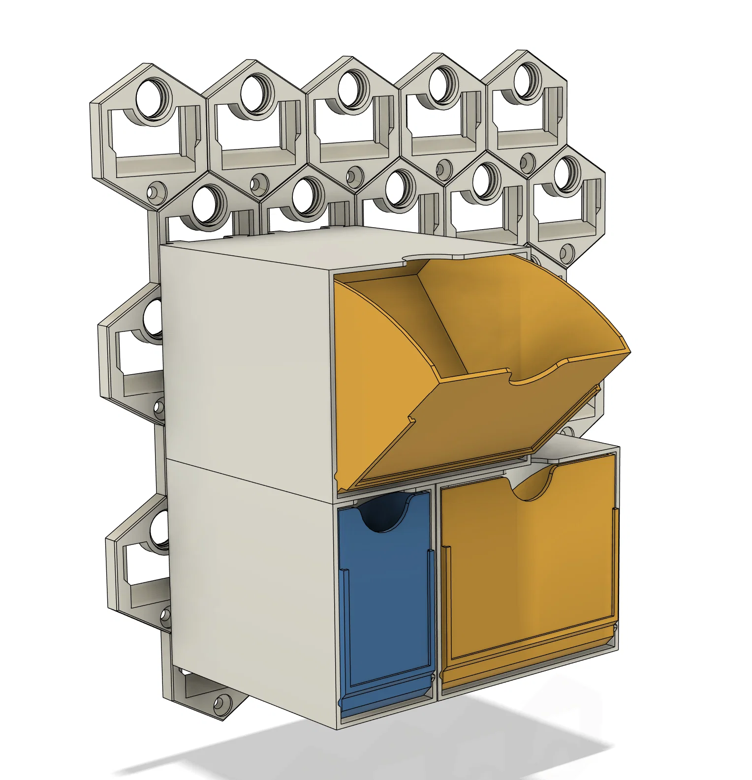Các mẫu khay GOEWS TiltBins kích thước 1x và 2x giúp bạn sắp xếp các linh kiện nhỏ gọn gàng trên hệ thống treo GOEWS. Sản phẩm hỗ trợ tùy chọn bắt vít chắc chắn và có thêm phiên bản tích hợp đế Gridfinity tiện lợi.