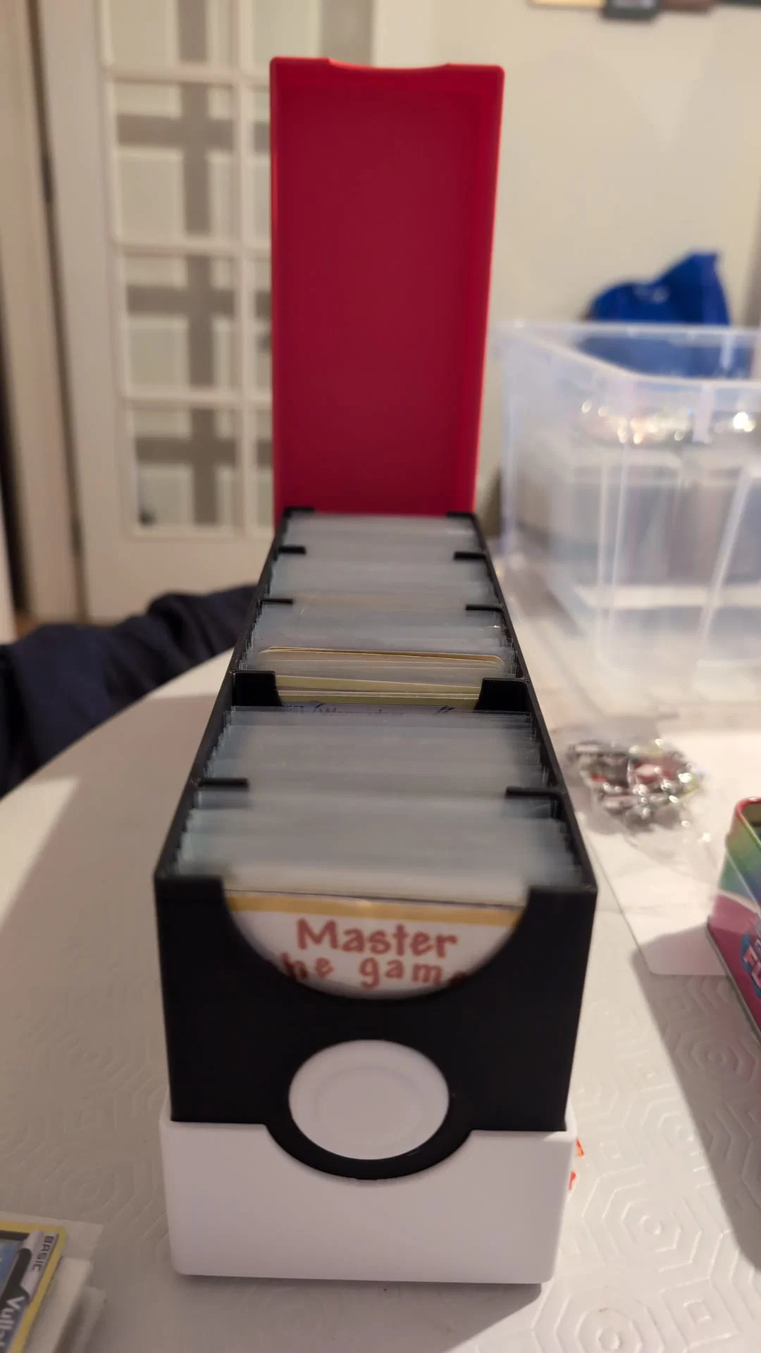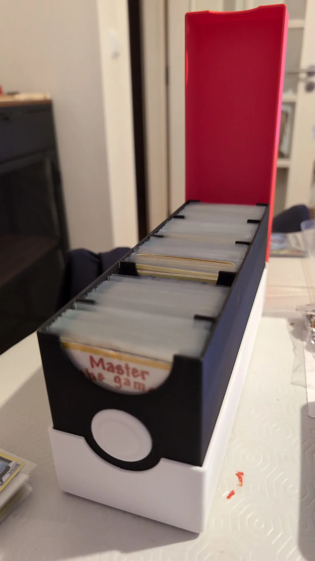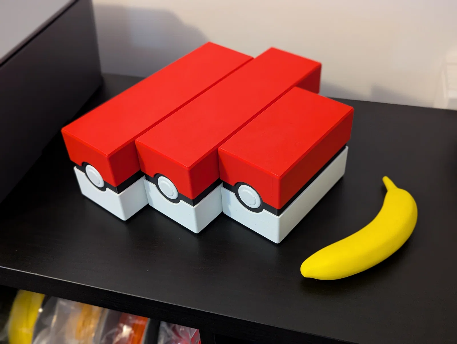 Bộ hộp đựng thẻ bài Pokemon này mang đến giải pháp vừa tiện lợi vừa đẹp mắt để bạn sắp xếp bộ sưu tập của mình. Các hộp hiện có hai kích thước: 12cm và 23cm. Với phiên bản 23cm, bạn có thể chọn cấu hình 5 ngăn cho các loại thẻ đa dạng hoặc 4 ngăn cho các danh mục thẻ lớn hơn. Phiên bản 12cm thì có 8 ngăn, rất phù hợp để chứa các bộ bài đã được xây dựng sẵn. Bạn có cần thêm kích thước hay cấu hình ngăn khác không? Hãy cho mình biết nhé! ### In ấn Đặc biệt với những hộp kích thước lớn, bạn hãy lưu ý đến khả năng bám dính trên bàn in của máy để tránh bị cong vênh (warping). Cân nhắc việc bật tính năng brim hoặc thêm bunny ears để cố định mô hình tốt hơn.