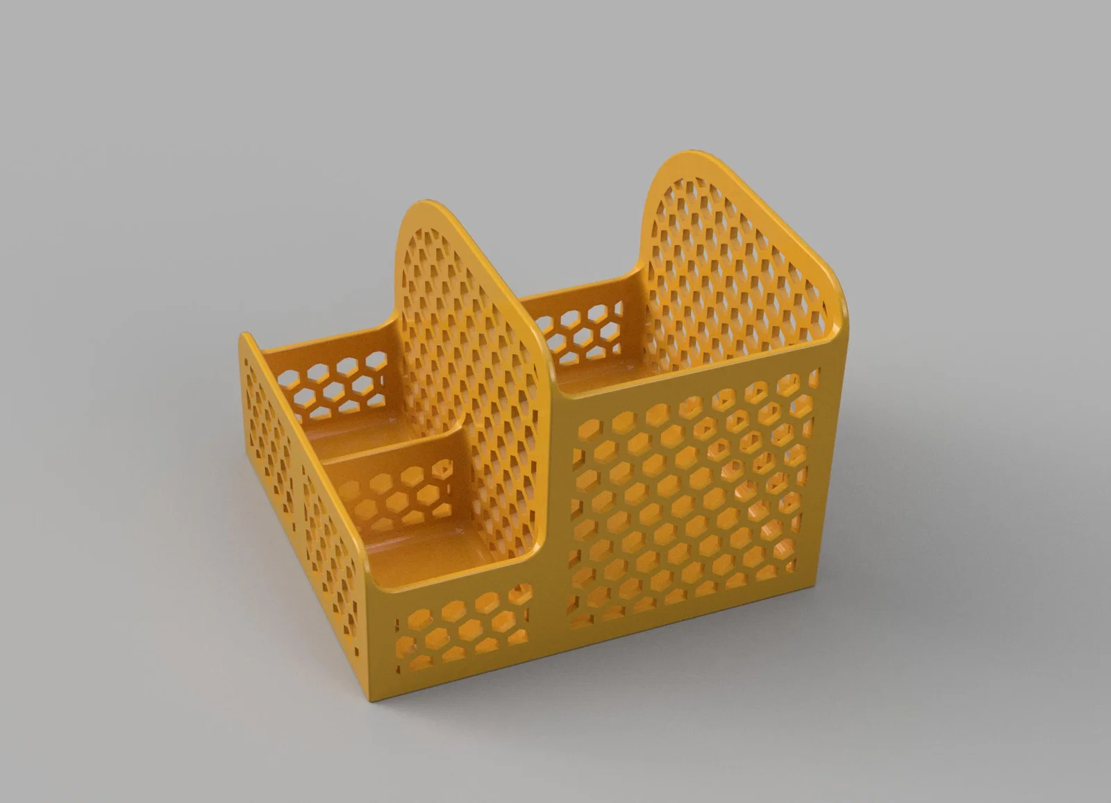 Điểm ấn tượng nhất của mẫu thiết kế này chính là cấu trúc dạng lưới tổ ong (honeycomb) đầy tinh tế. Không chỉ giúp sản phẩm có trọng lượng nhẹ và tiết kiệm nguyên liệu in, cấu trúc này còn tạo cảm giác thoáng đãng, hiện đại cho mọi góc decor. Dù bạn dùng để đựng bút viết, kéo, các loại linh kiện điện tử, hay thậm chí là dụng cụ nhà bếp nhỏ, chiếc khay này đều đáp ứng rất tốt nhờ độ bền vững chãi của thiết kế in 3D. Bạn hoàn toàn có thể in nhiều chiếc để sắp xếp đồng bộ, tạo nên vẻ ngoài chuyên nghiệp cho không gian của mình.