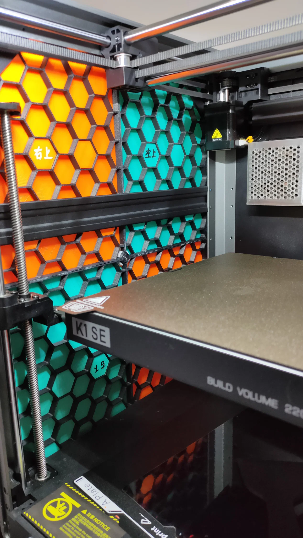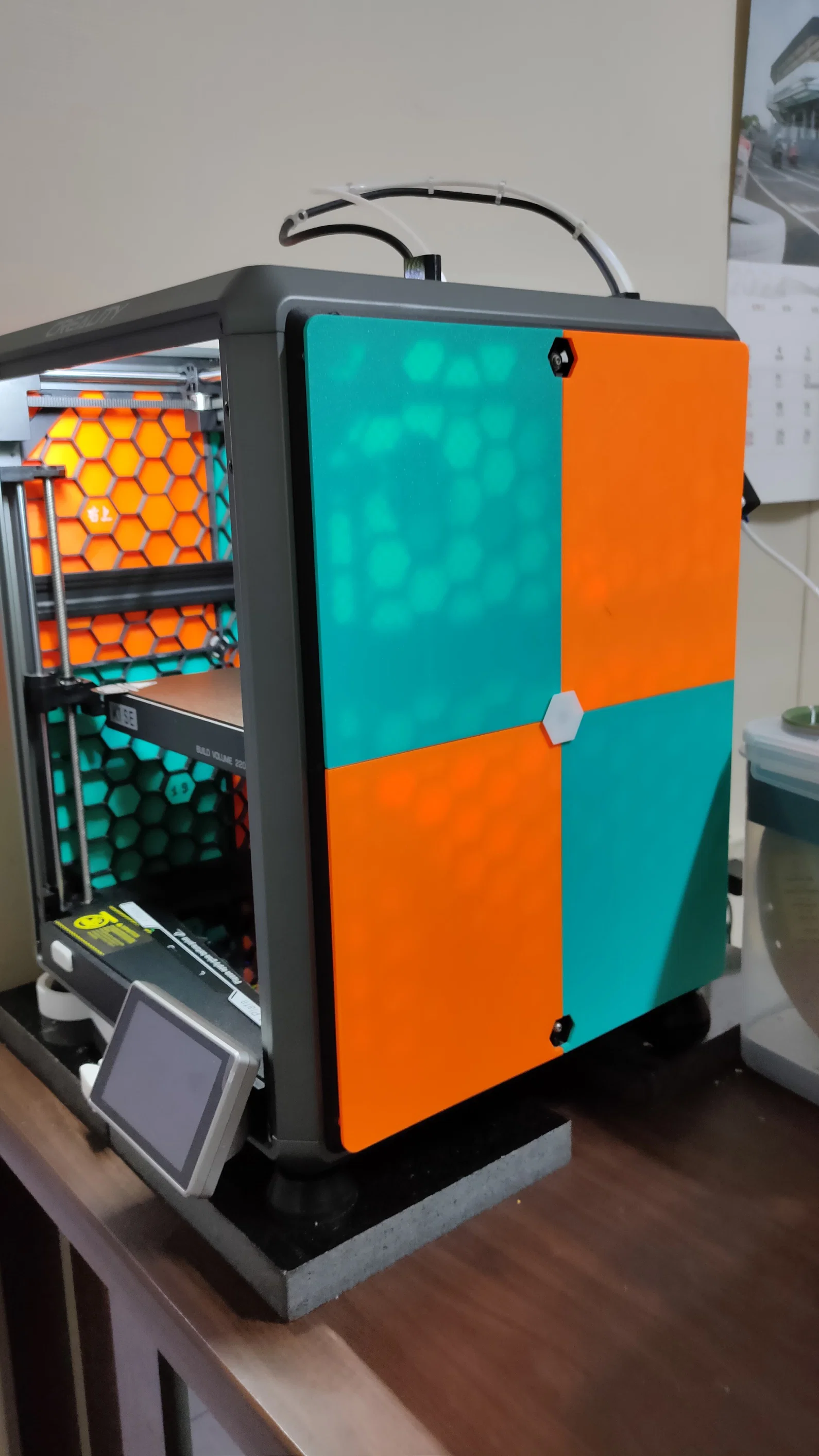 Sản phẩm này cực kỳ hữu ích cho những ai đang sử dụng hệ thống tường công cụ dạng lưới tổ ong nhưng muốn chuyển đổi không gian in thành môi trường kín để in các loại vật liệu đòi hỏi nhiệt độ ổn định như ABS hoặc ASA. Các tấm được thiết kế vừa khít, sử dụng các chốt dạng lục giác để giữ cố định, tạo ra một bề mặt phẳng mịn màng và đồng nhất. Màu sắc phối hợp giữa cam và xanh giúp máy in của bạn trông nổi bật và chuyên nghiệp hơn hẳn so với nguyên bản.