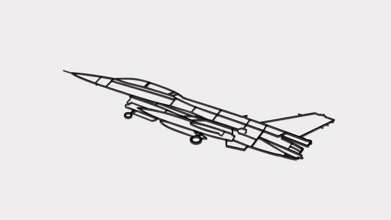 Mô hình nghệ thuật treo tường tiêm kích F-16 dài 43cm với thiết kế khung dây ấn tượng. Bạn có thể in mô hình ở kích thước gốc ngay cả trên các máy in 3D có bàn in nhỏ nhờ tùy chọn chia mảnh tiện lợi. Tùy chỉnh kích thước dễ dàng theo ý muốn.