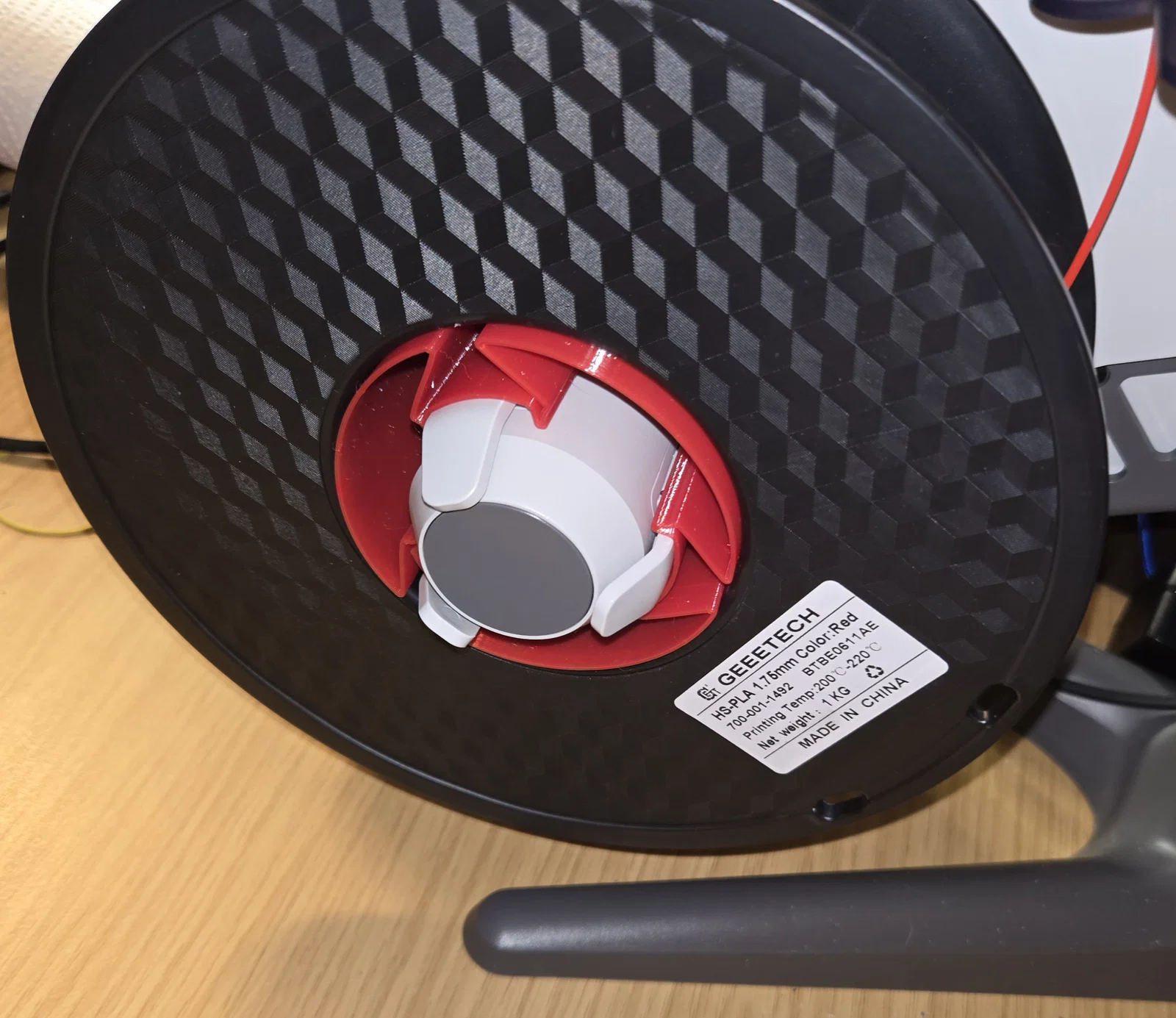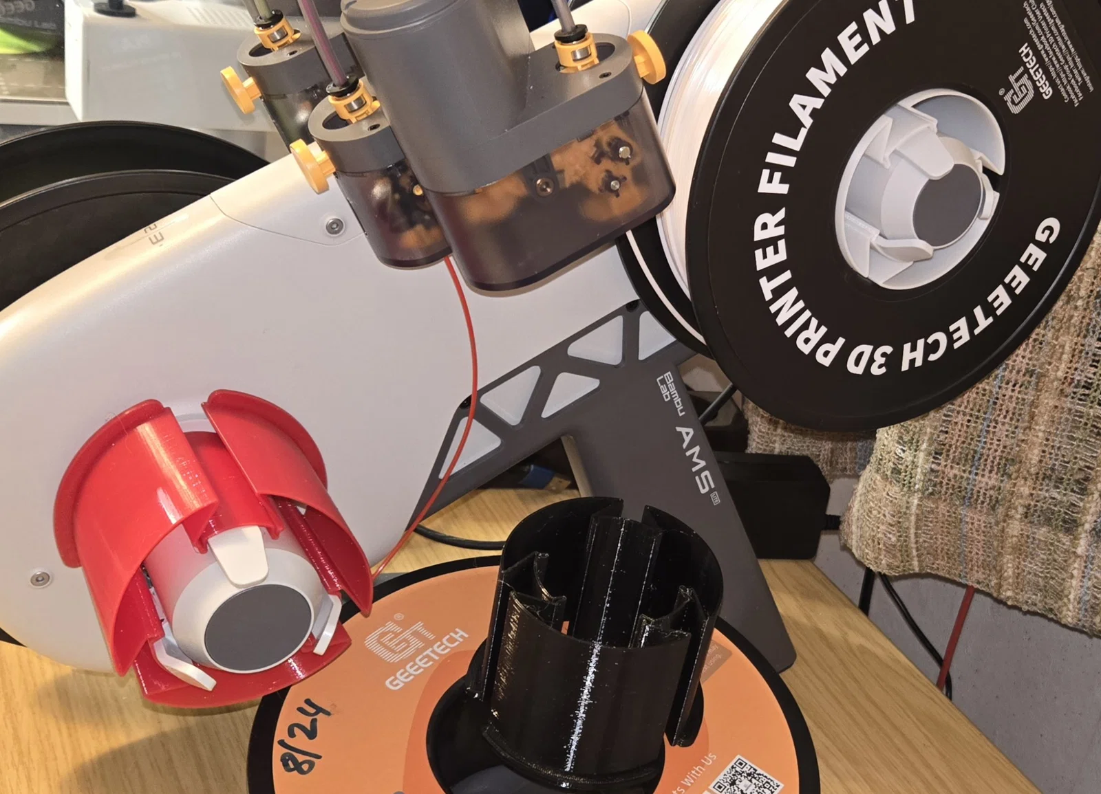 Cách này giúp việc thay cuộn nhựa cực kỳ nhanh gọn mà không cần phải tháo adapter ra khỏi giá đỡ AMS Lite. Điều kiện duy nhất là cuộn nhựa phải có độ ma sát vừa đủ với adapter, nhưng cách này hoạt động rất hoàn hảo trên máy của mình.