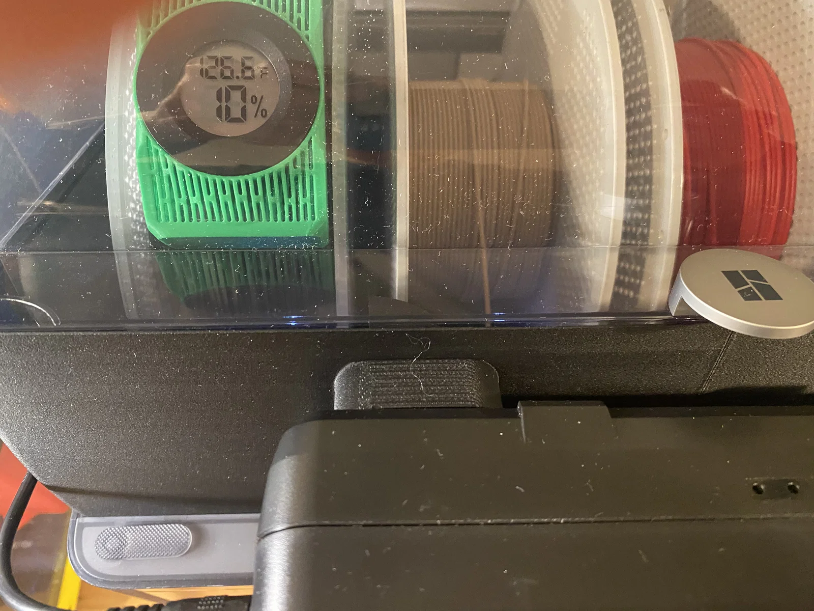 Sau 8 tiếng hoạt động liên tục, nhiệt độ ở phía trên nắp AMS đạt 126.6 °F (52.6 °C), và độ ẩm được giữ ổn định ở mức 10%.
