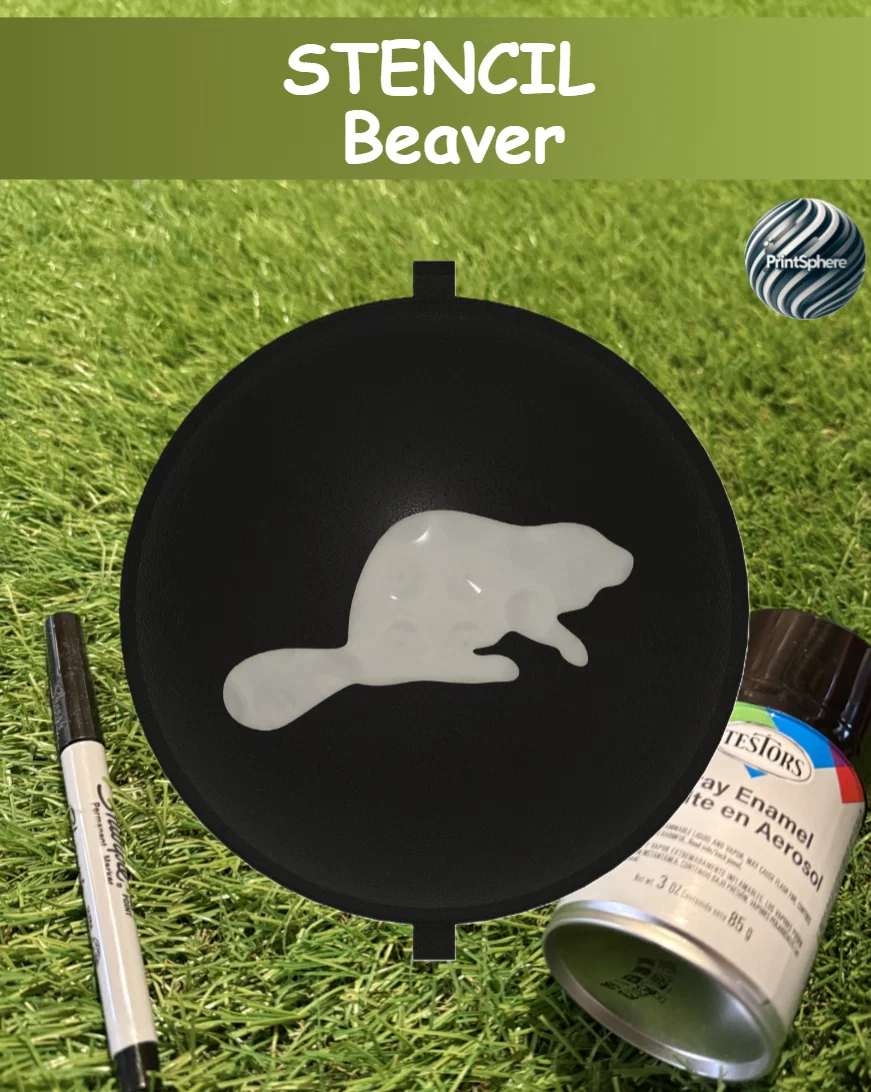 Tạo dấu ấn cá nhân cho bóng golf của bạn với miếng lót stencil hình chú hải ly (Beaver). Phụ kiện này tương thích với các loại khung giữ stencil và khung phun sơn của PrintSphere, hỗ trợ in tốt trên cả máy FDM và SLA.