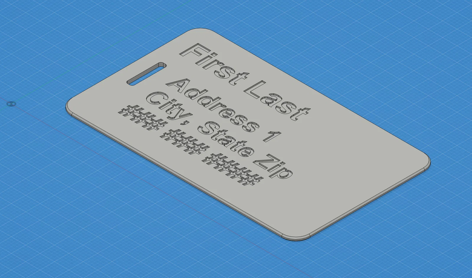Mình đã remix lại thiết kế của Koyo để cho phép hiển thị địa chỉ với phông chữ nhỏ hơn và tên với phông chữ lớn hơn. Bạn có thể thay đổi kích thước mô hình trong phần mềm Slicer để đạt được kích thước như ý muốn. File thứ hai là phiên bản nhỏ gọn hơn (50 x 83) và mỏng hơn với phần văn bản đã được tinh chỉnh đôi chút. Hãy đánh giá và chia sẻ thành quả in của bạn nhé 😎