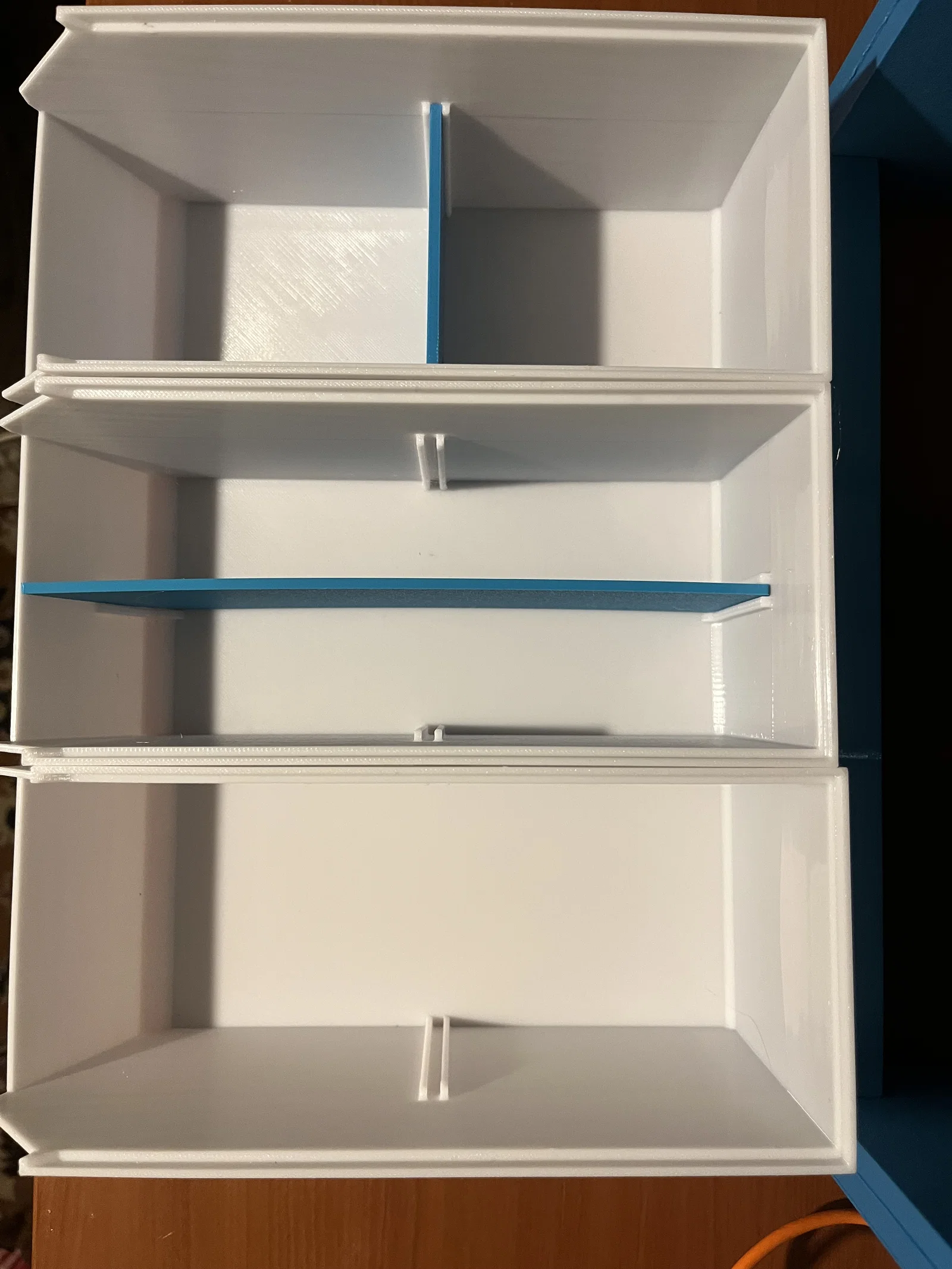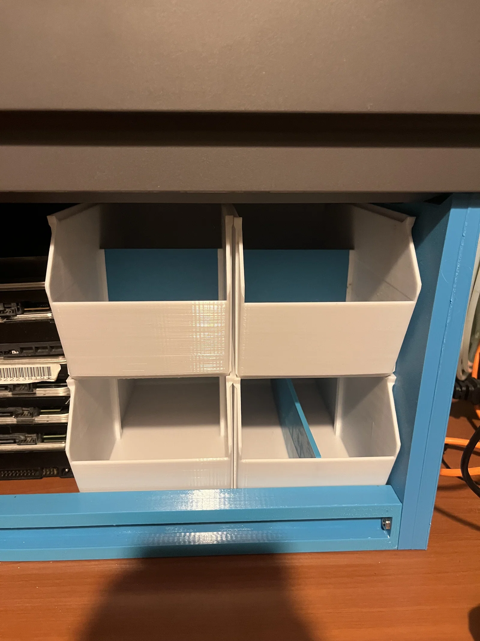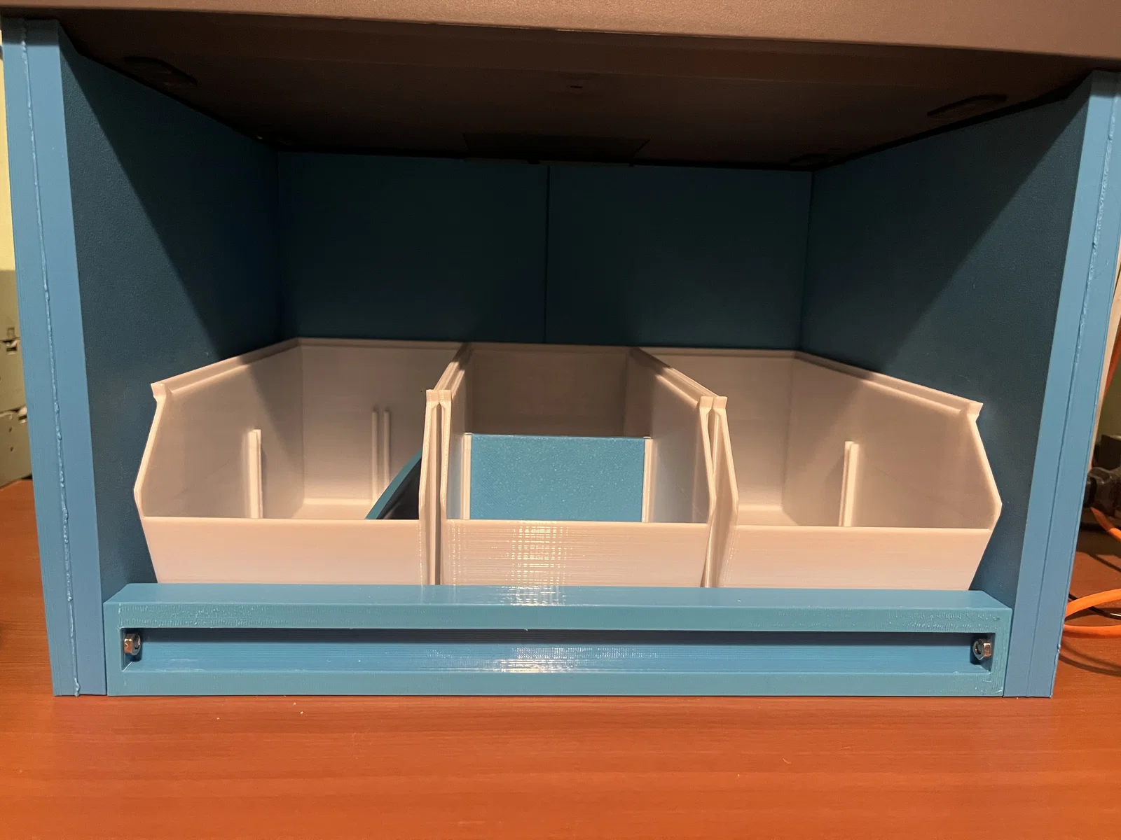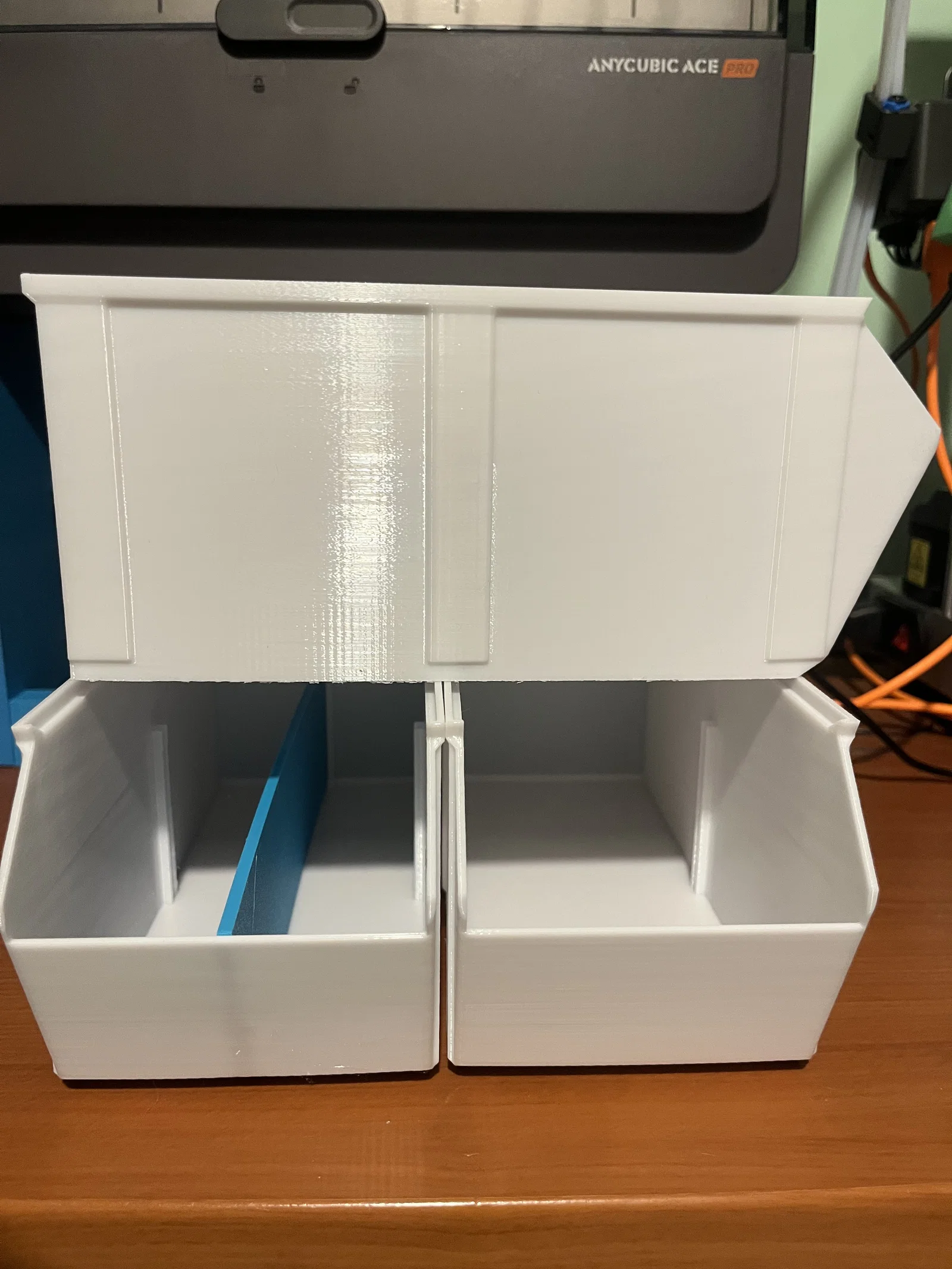Bộ ACE được cố định chắc chắn vào các rãnh thiết kế sẵn. Kệ được chia thành nhiều phần để in và cần bắt vít lại với nhau. Bạn có thể bắt vít kệ trực tiếp xuống mặt bàn (nếu muốn, không bắt buộc). Sản phẩm bao gồm 6 hộp đựng được thiết kế riêng cho kệ này.