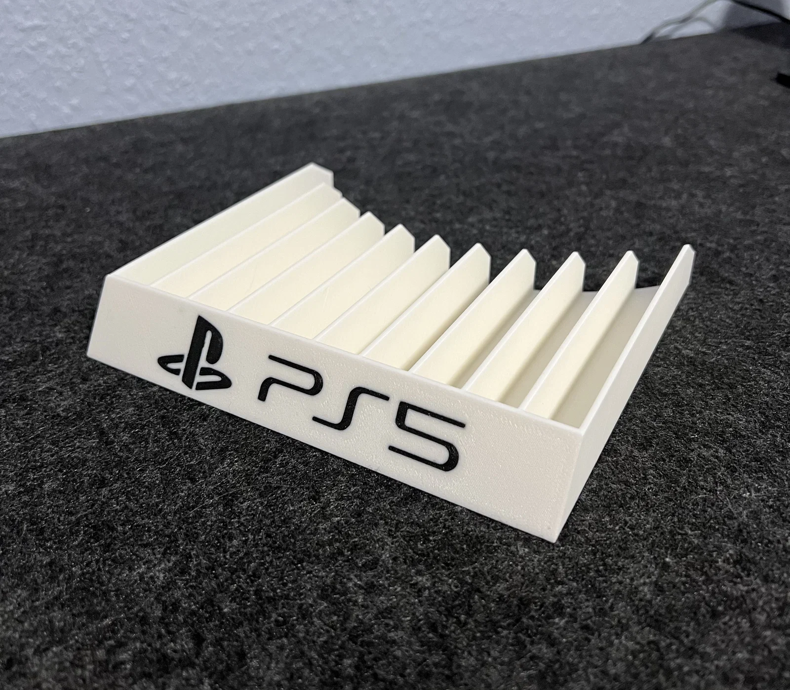 Giá đỡ đĩa game PS5 tiện lợi, chứa được tới 10 đĩa. Thiết kế có logo PS5 đúc sẵn giúp bạn không cần dùng keo dán. Sản phẩm dễ in, không cần support, mang lại vẻ ngoài gọn gàng và chuyên nghiệp cho góc chơi game của bạn.