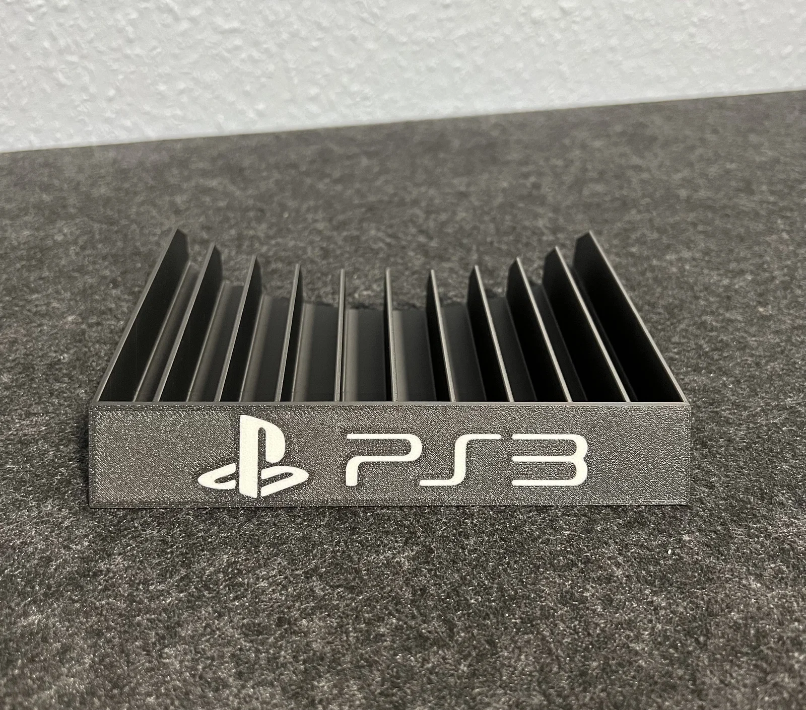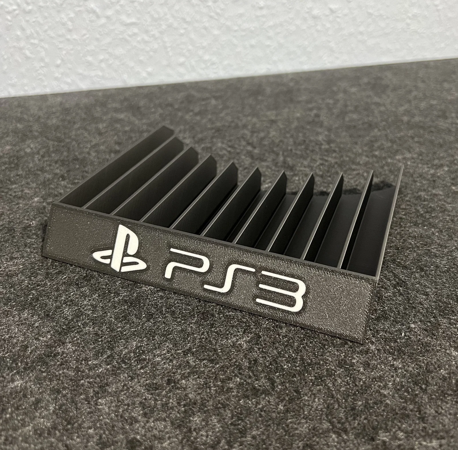 Giá đỡ đĩa game PS3 thiết kế tinh tế, chứa được tới 10 hộp đĩa. Sản phẩm có logo PS3 được nhúng sẵn không cần dán keo, in dễ dàng không cần support. Đây là giải pháp lưu trữ gọn gàng và đẹp mắt cho góc máy của bạn.