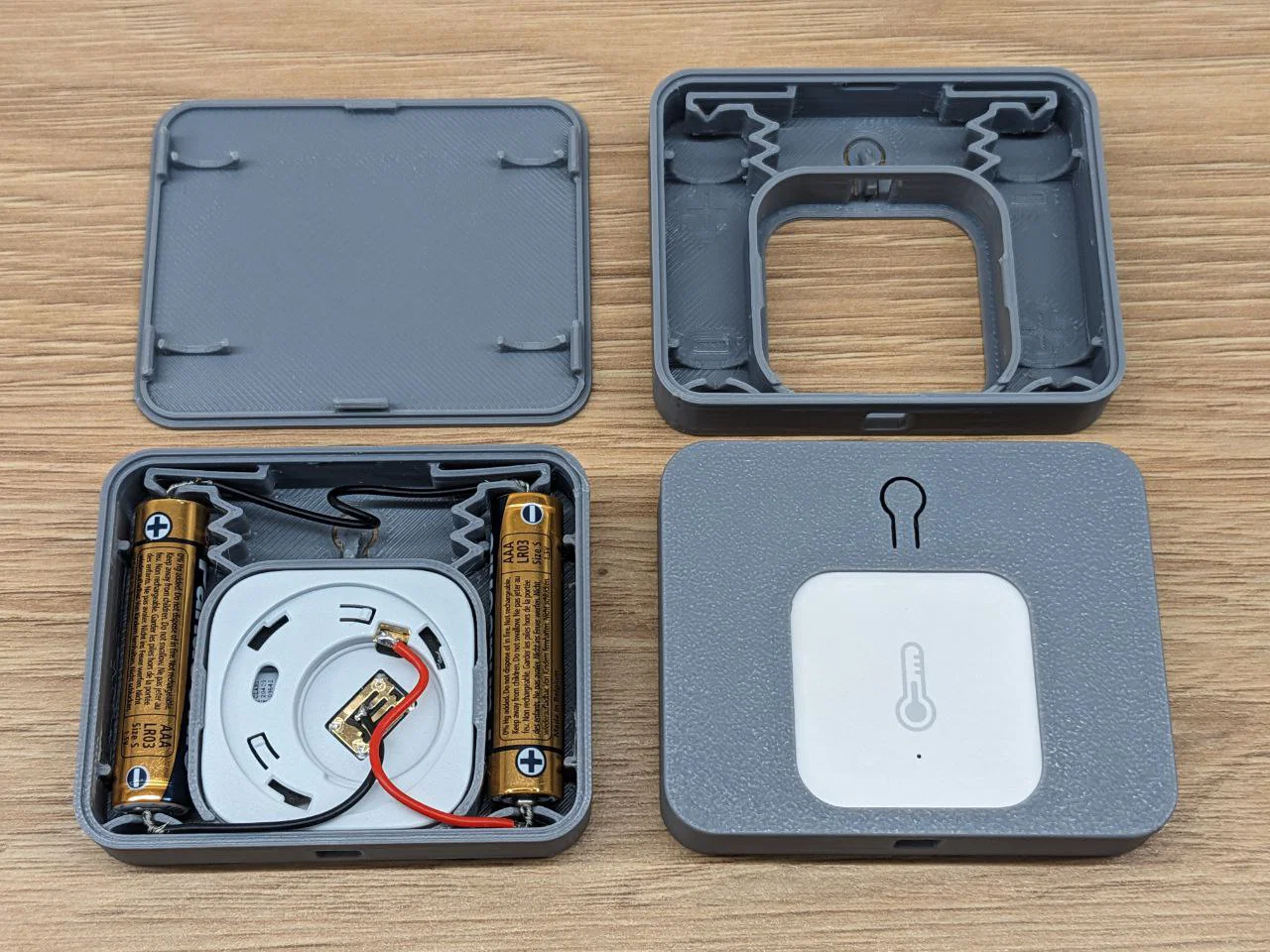 Giải pháp thay thế pin CR2032 bằng 2 viên pin AAA cho cảm biến nhiệt độ Aqara Zigbee. Thiết kế tiện lợi, đi kèm nắp lưng gắn tường và file .step để tùy chỉnh, giúp kéo dài thời gian sử dụng đáng kể cho thiết bị của bạn.