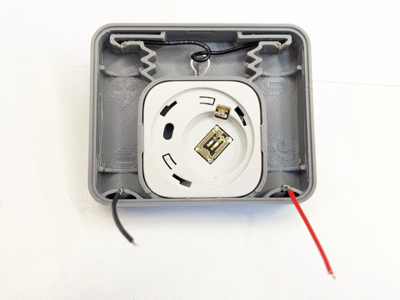 Việc lắp ráp yêu cầu một chút kỹ năng hàn dây vào các điểm tiếp xúc pin bên trong cảm biến. Mình thấy cách hàn dây trực tiếp vào thiết bị sẽ dễ hơn là cố gắng nhét một bộ chuyển đổi pin CR2032 giả.