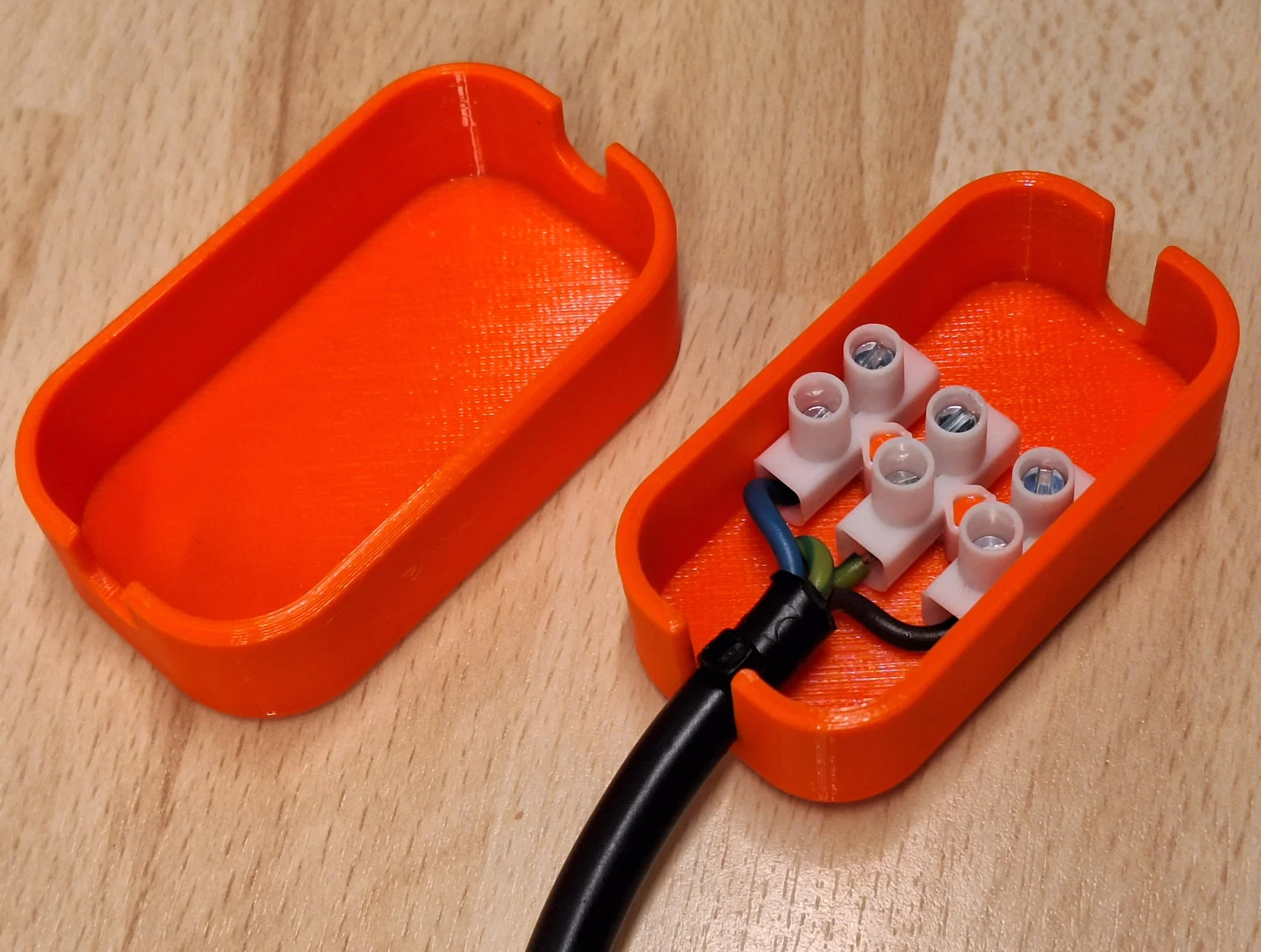 Hộp bảo vệ chắc chắn giúp giữ chặt cầu đấu 3 dây điện, thay thế cho việc quấn băng keo điện lỏng lẻo. Thiết kế snap-fit dễ in, không cần support, phù hợp cho nhiều loại dây điện thông dụng.