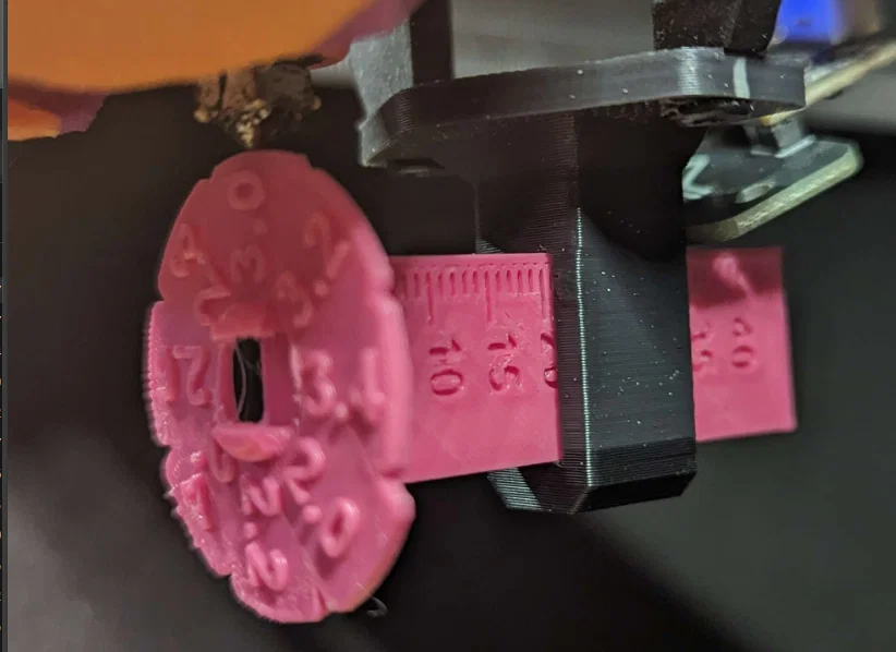 Các con số trên bông hoa thể hiện giá trị Z offset của bạn, và vạch trên thước đo trùng với phần đế sẽ cho biết giá trị Y offset (bạn cũng có thể dùng thước kẹp để đo từ mặt sau của bông hoa đến mặt trước của đế để lấy thông số Y offset).