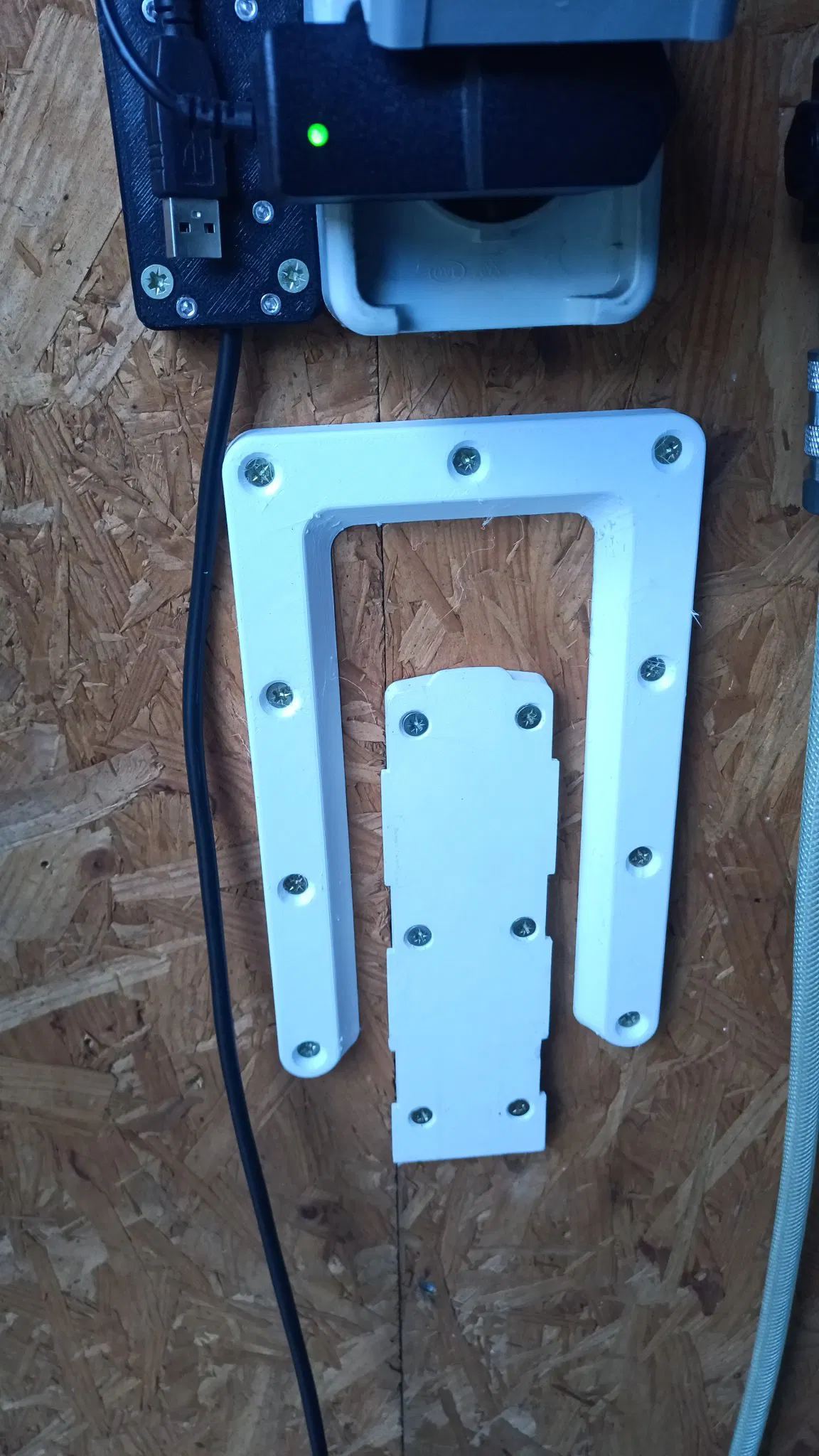 Để sạc pin một cách thuận tiện, tôi đã tạo ra một tấm gắn tường đơn giản để đặt pin lên khi sạc hoặc khi đã đầy nhưng cần được lưu trữ.