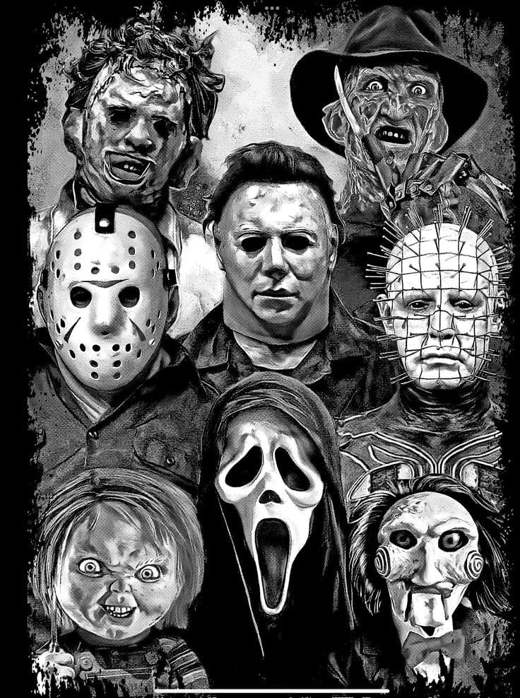 Tác phẩm phù điêu đen trắng này quy tụ những nhân vật kinh điển nhất của điện ảnh kinh dị, mỗi nhân vật đều mang vẻ ngoài đáng sợ và đặc trưng riêng. Từ Michael Myers, Jason Voorhees, Freddy Krueger cho đến Ghostface và nhiều cái tên khác, tác phẩm này lột tả trọn vẹn nỗi kinh hoàng mà các phản diện này đã mang lại trên màn ảnh rộng. Với chi tiết sắc nét và độ tương phản cao, đây chính là sự tôn vinh dành cho dòng phim kinh dị và là món đồ tuyệt vời cho các fan hâm mộ thể loại này.