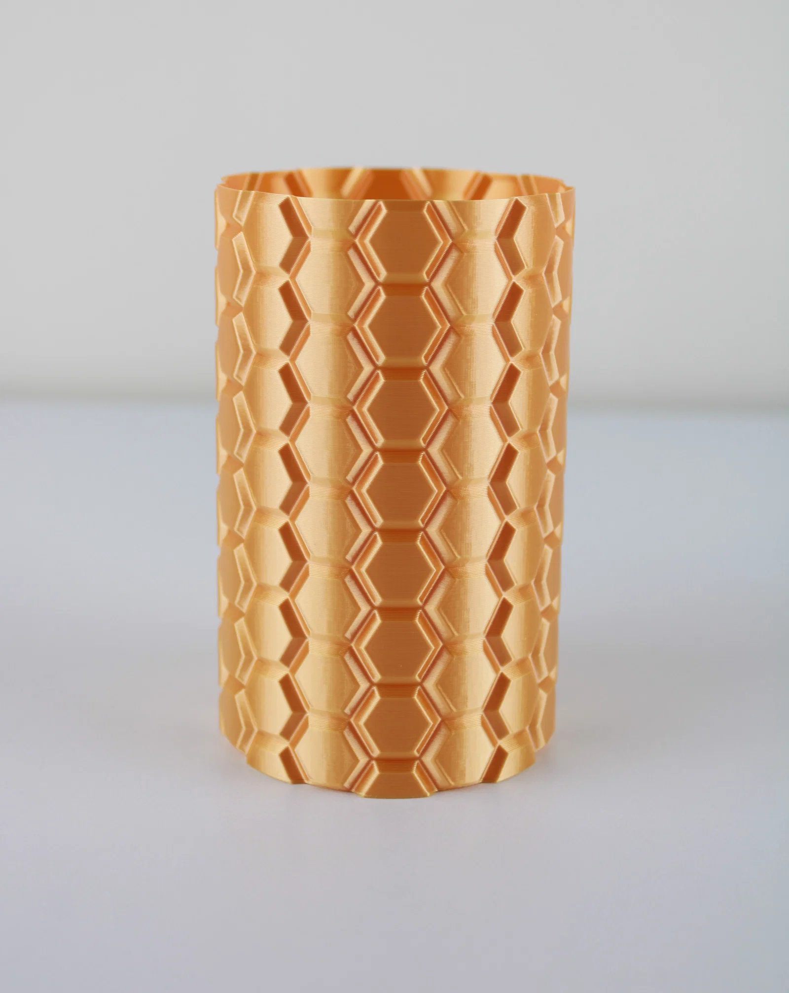 Chiếc bình có hoa văn tổ ong này cực kỳ thích hợp để dùng làm vật trang trí hoặc ống cắm bút. Mẫu này được thiết kế để có thể thay đổi kích thước và in ở chế độ vase mode, nên nếu bạn có chỉnh lại kích thước thì hãy nhớ kiểm tra lại cài đặt vase mode nhé.