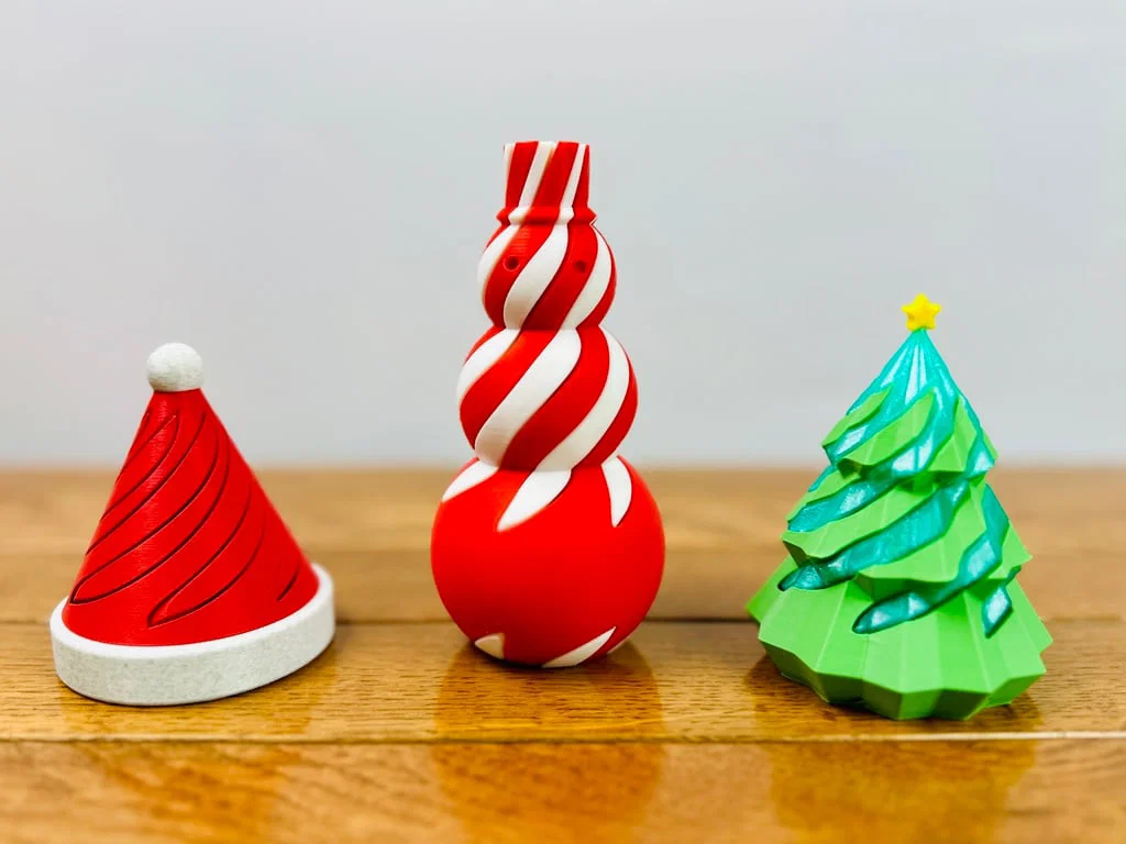 Trọn bộ các mẫu đồ chơi fidget xoắn cực thú vị với chủ đề Giáng sinh bao gồm Cây thông, Mũ ông già Noel và Người tuyết. Tải ngay file .3mf chất lượng để in ấn và trang trí cho không gian của bạn thêm phần sinh động dịp lễ hội này!