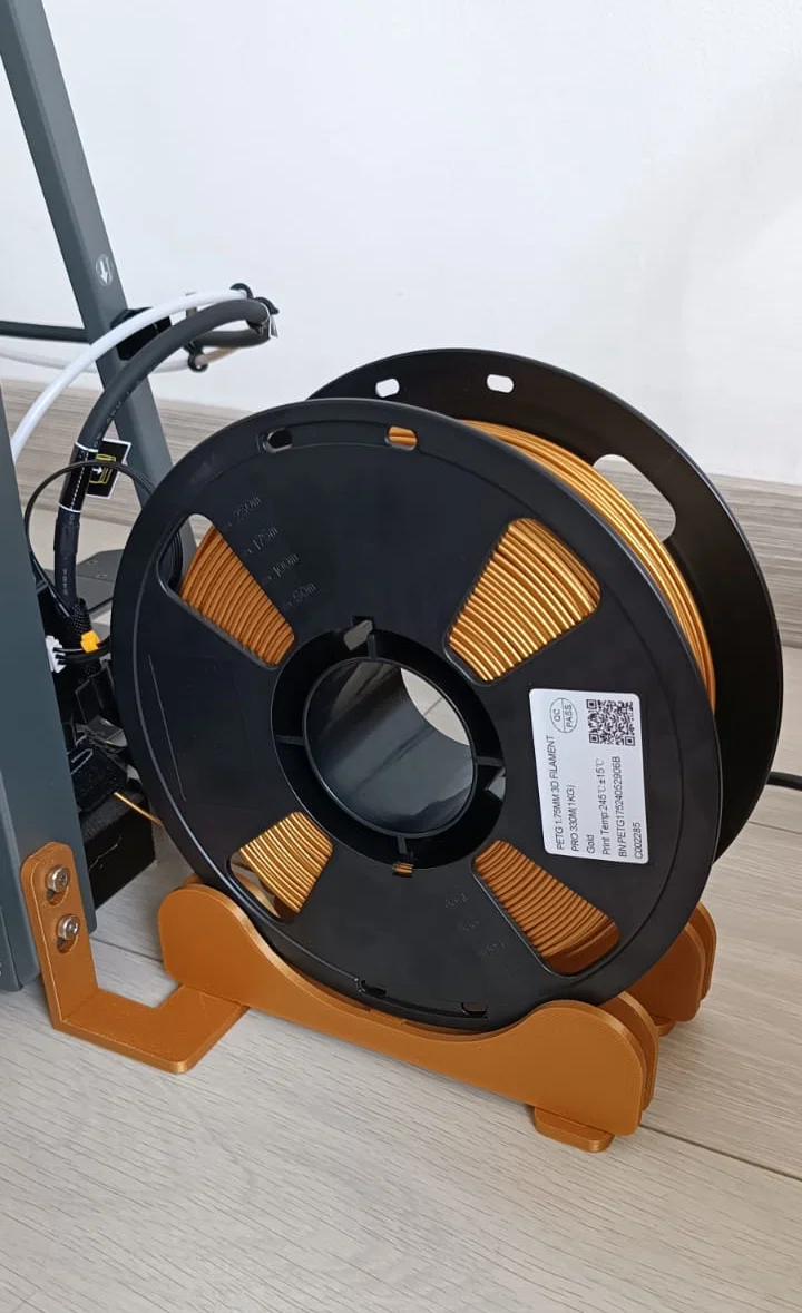 Giá đỡ cuộn filamento 1kg dành cho máy in Ender 3 V3 Plus. Thiết kế sử dụng bạc đạn 628-2RS giúp cuộn nhựa xoay mượt mà, có thể tùy biến để lắp cho các dòng máy in khác một cách dễ dàng.