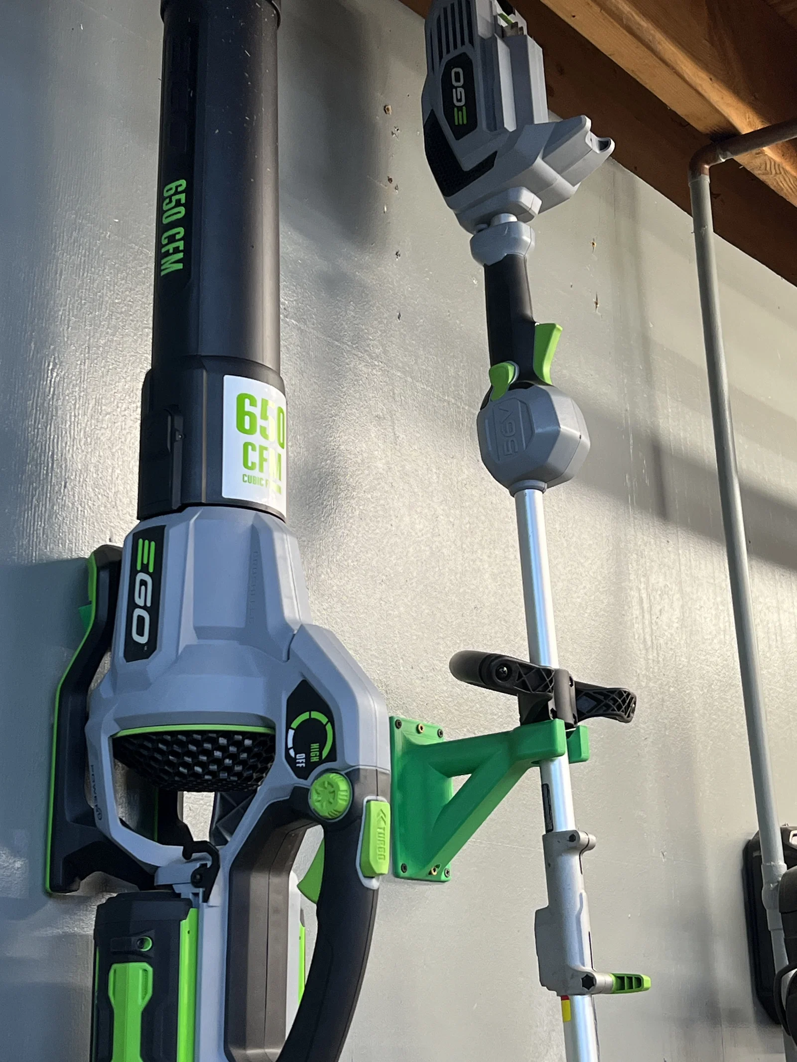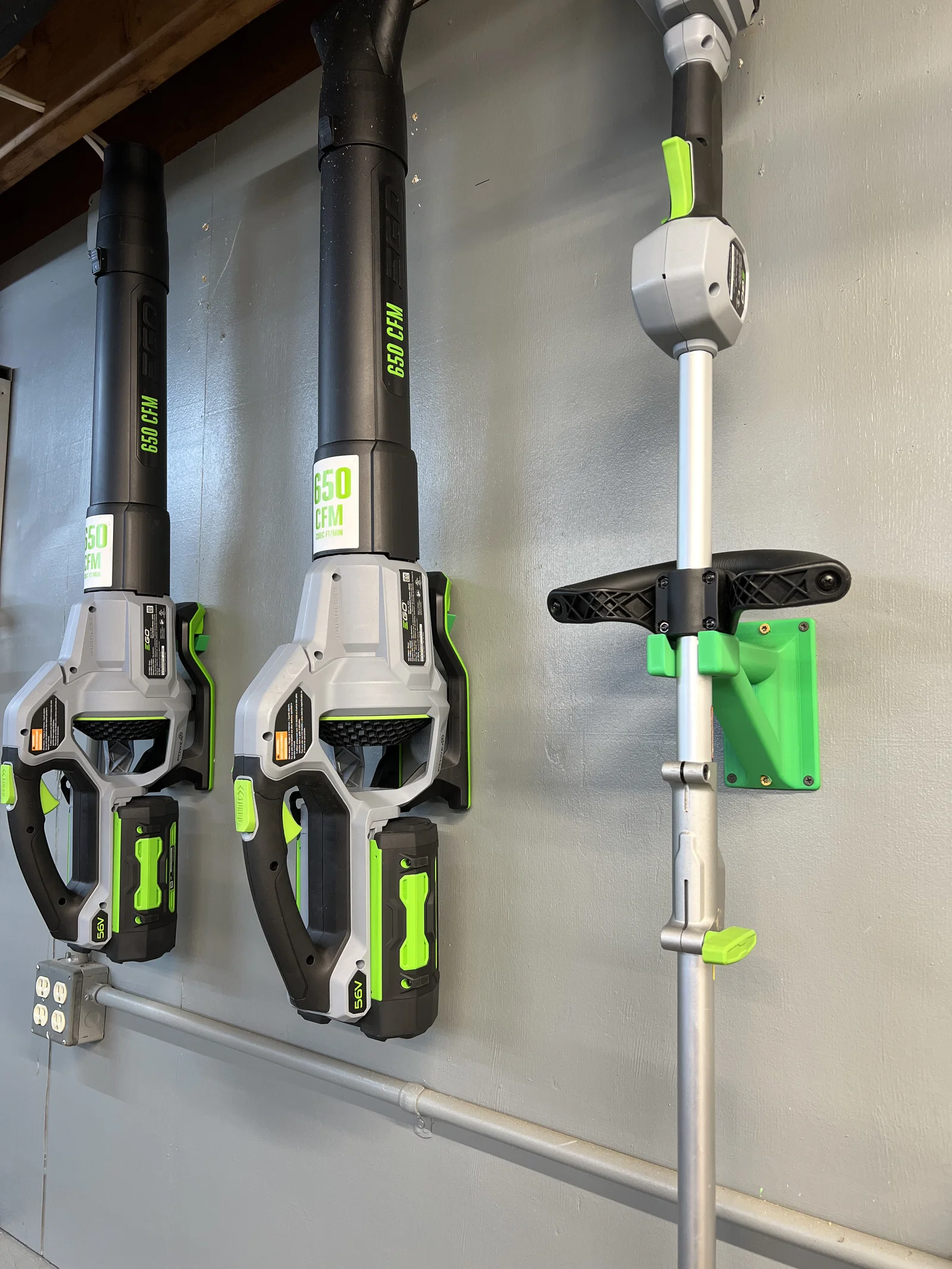 Nếu bác nào đang dùng các dòng máy cắt cỏ, máy thổi lá của thương hiệu EGO thì chắc hẳn sẽ hiểu cảm giác cái nhà kho hay gara lúc nào cũng bừa bộn vì không biết cất máy sao cho gọn. Với thiết kế giá treo tường chuyên dụng này, các bác có thể dễ dàng tối ưu hóa không gian lưu trữ, treo máy lên cao để sàn nhà được thông thoáng và sạch sẽ hơn hẳn. Điểm đặc biệt của phiên bản này là tác giả đã tinh tế thêm 2 lỗ bắt vít ở chính giữa, cho phép các bác cố định giá trực tiếp vào đà gỗ (stud) của tường một cách cực kỳ chắc chắn mà không cần lo lắng về độ rung lắc.