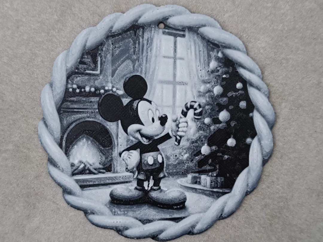 Chào mọi người, mùa Giáng sinh sắp đến rồi, nếu bạn đang tìm kiếm một món đồ trang trí vừa mang đậm nét cổ điển của Disney, vừa thể hiện kỹ thuật in 3D hiện đại thì đây chính là lựa chọn tuyệt vời. Mẫu in "Mickey Mouse Candy Cane Christmas Ornament" này được thiết kế theo công nghệ Hueforge, mang lại hình ảnh Mickey cùng chiếc kẹo gậy đầy tinh tế, cực kỳ phù hợp để treo trên cây thông gia đình.